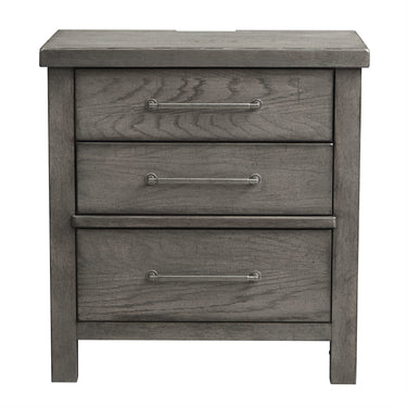 This night stand is more than just a surface to place your reading lamps, glasses or alarm clock. Night stands define the overall aesthetic and feel of your master bedroom or suite. This timeless farmhouse piece is constructed with poplar solids and knotty oak veneers, accompanied by a charming dusty charcoal finish with heavy distressing. Accented by unique washed brass elongated bar pull hardware, this night stand is sure to tie your room together, adding the perfect finishing touch.