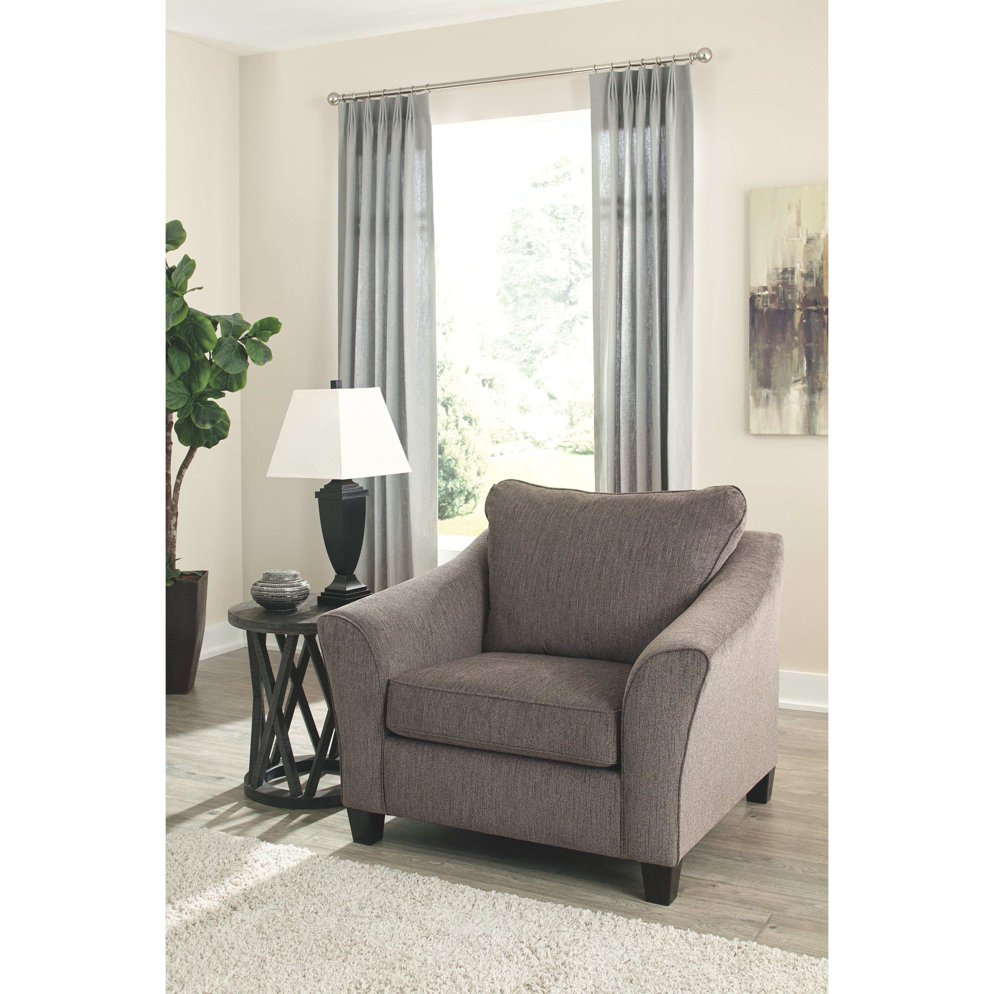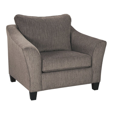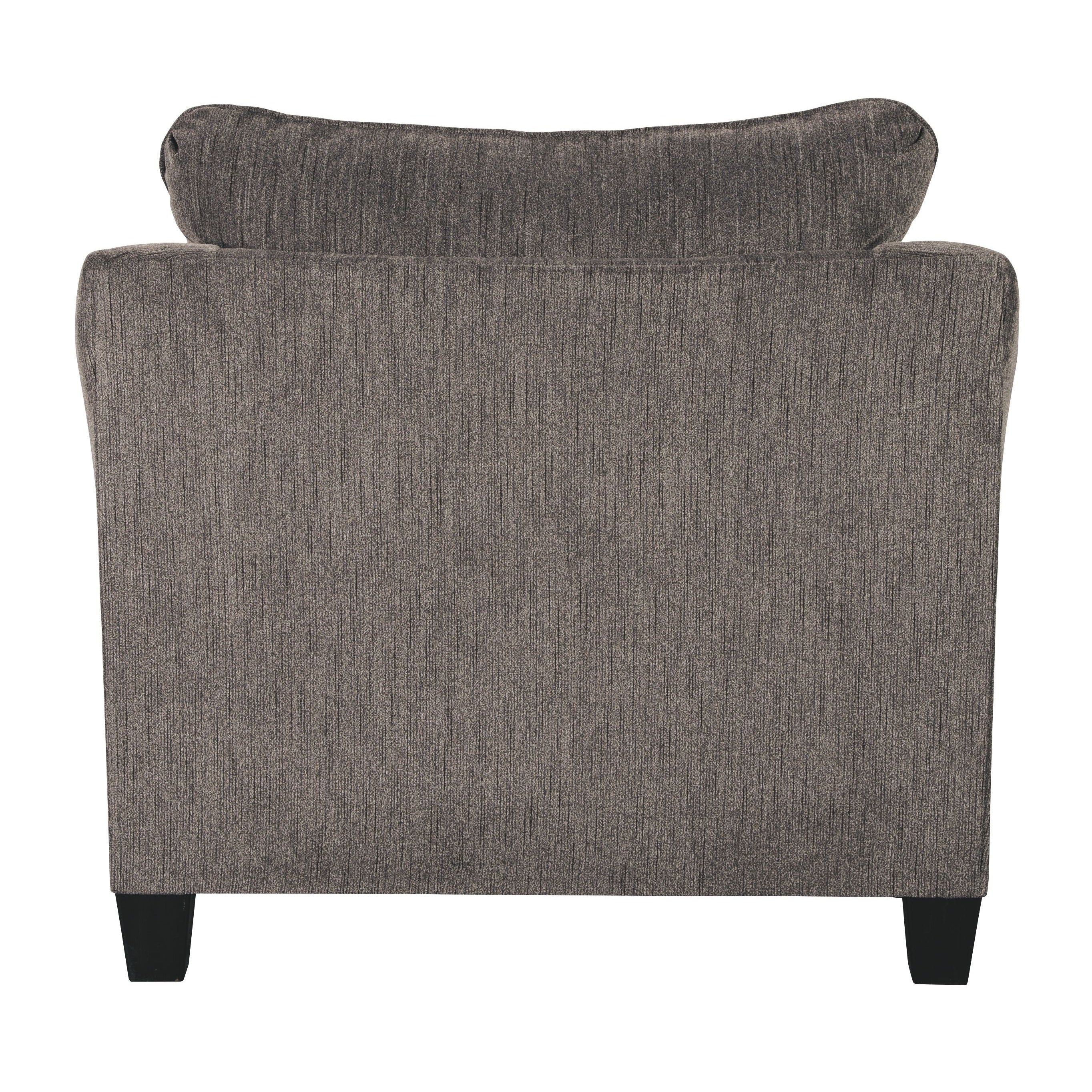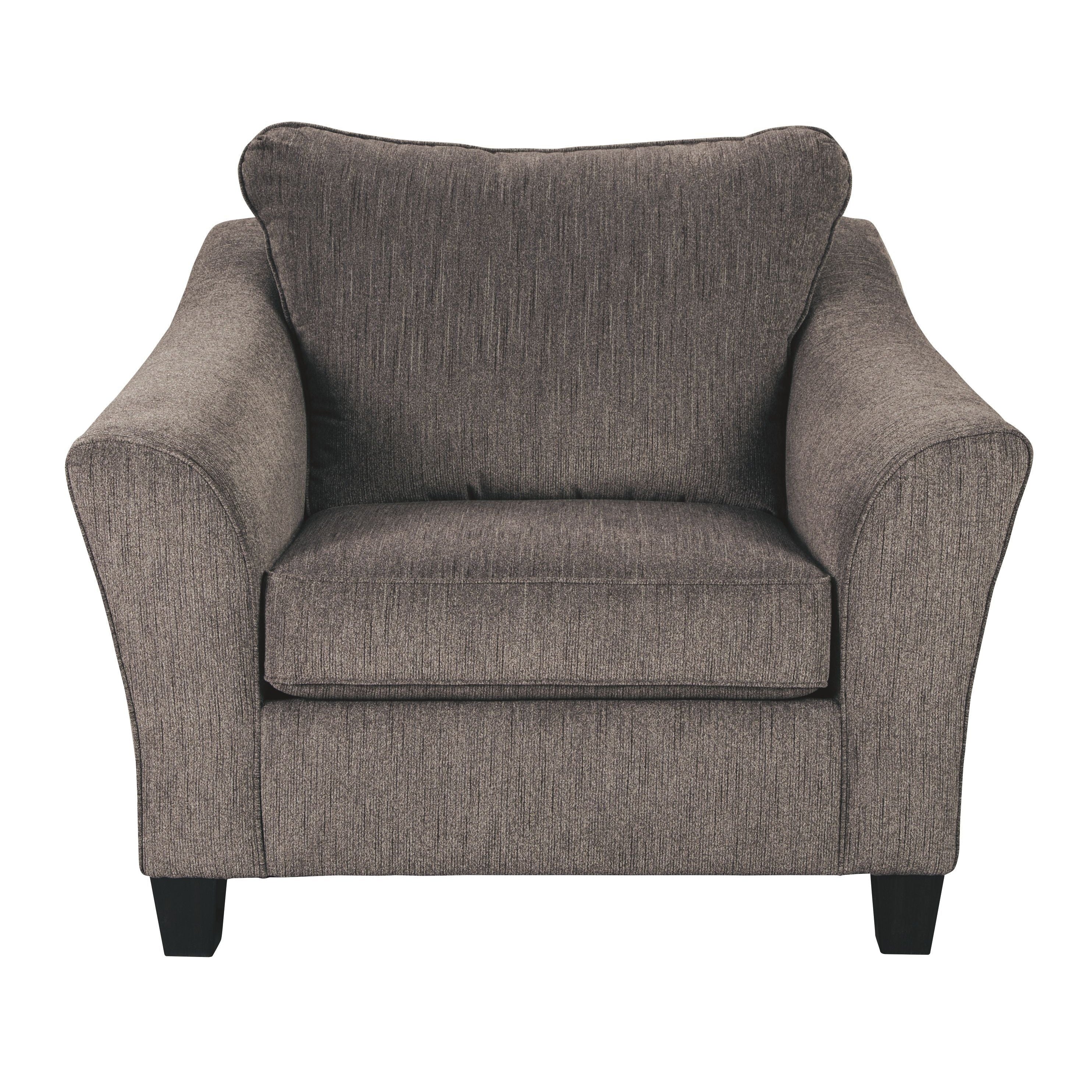 This oversized chair sets the scene for a modern space full of casual flair. In the on-trend slate color, its textured chenille with solid microfiber upholstery provides a luxuriously soft feel that's inviting. Gently flared arms and plush seat cushions welcome comfort and relaxation-what a cozy addition for any room.