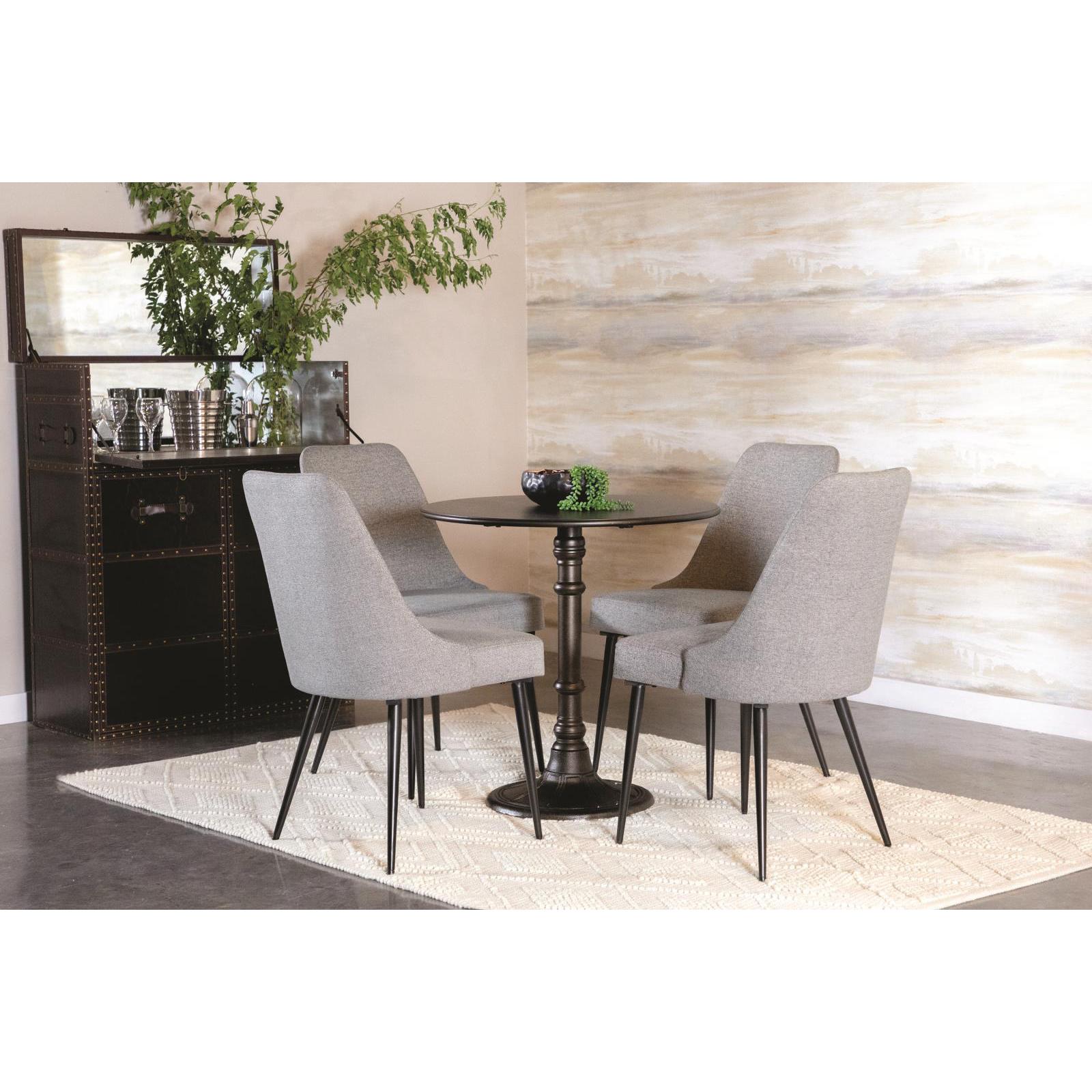 This petite dining table is an excellent option for those who wish to express a mature sense of style within a limited space. complete with a single supportive leg that flares out into a decorated base, it leaves plenty of legroom for you and your loved ones to comfortably enjoy the pleasure of each other's company. a classic, bistro-style design is beautifully enhanced by artfully placed etched lines, and is complete with an appealing antique bronze and galvanized finish. whether you're searching for a cozy place to sip a hot cup of tea, or for family and friends to enjoy a meal, this table will upgrade your dining area with sensible sophistication. convenient and versatile, it's available in both bar and dining heights.