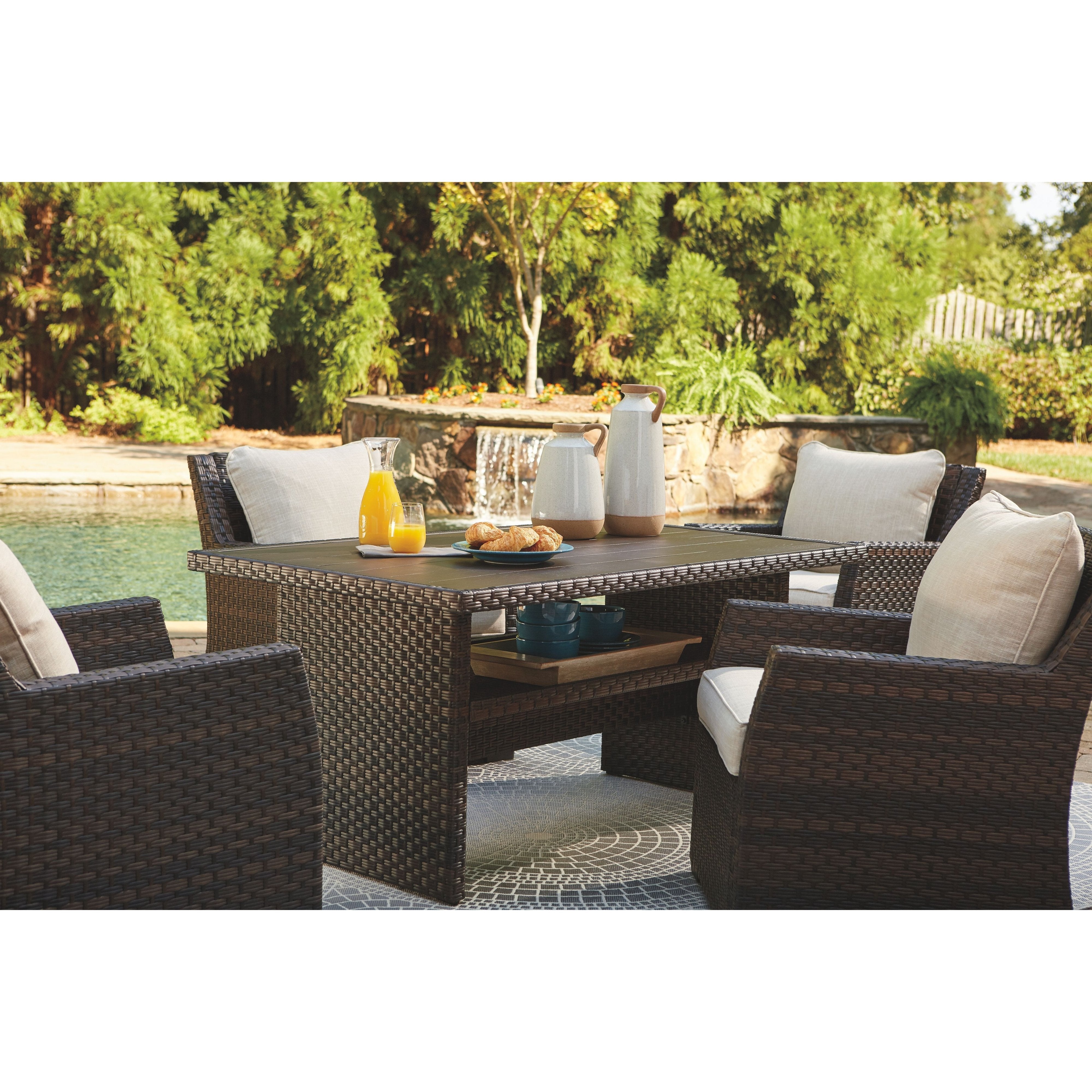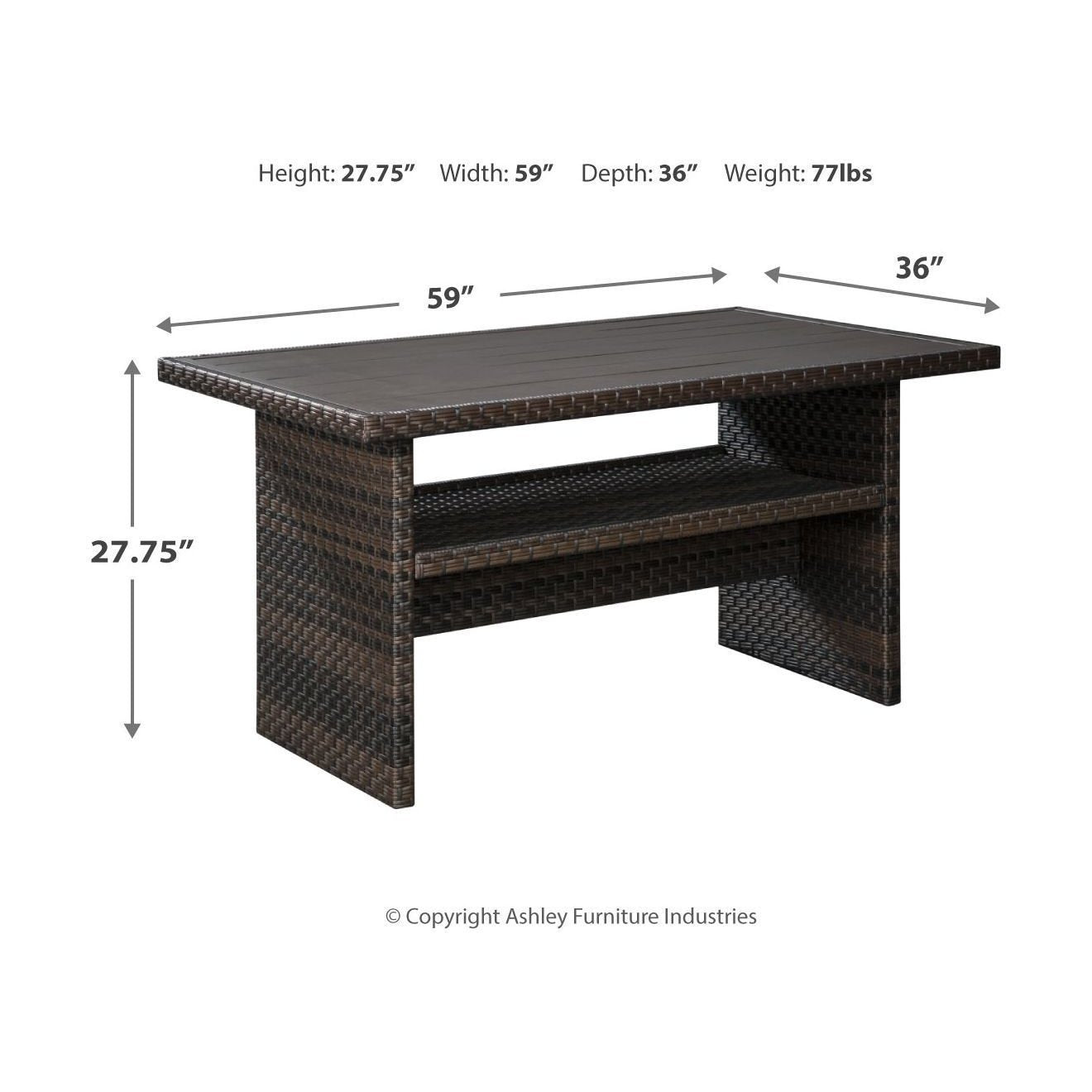 Al fresco living is easy to love with this multi-use table. Its raised height makes it perfect for everything from mealtime, game time, a round of cards or a round of drinks. Resin wicker over a rust-free aluminum frame lends an upscale aesthetic that’s downright durable. Aluminum top is conveniently water and stain resistant.