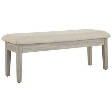 Bring a relaxed-yet-refined sense of good taste to a space with this wonderfully comfortable upholstered dining bench. An inspired choice for modern farmhouse living, its clean-lined frame sports a gray finish that's so easy on the eyes. The bench's cushioned upholstered seat, covered in a complementary textured beige fabric, goes easy on the body. Tuck your treasures out of sight with hidden storage under the seat.