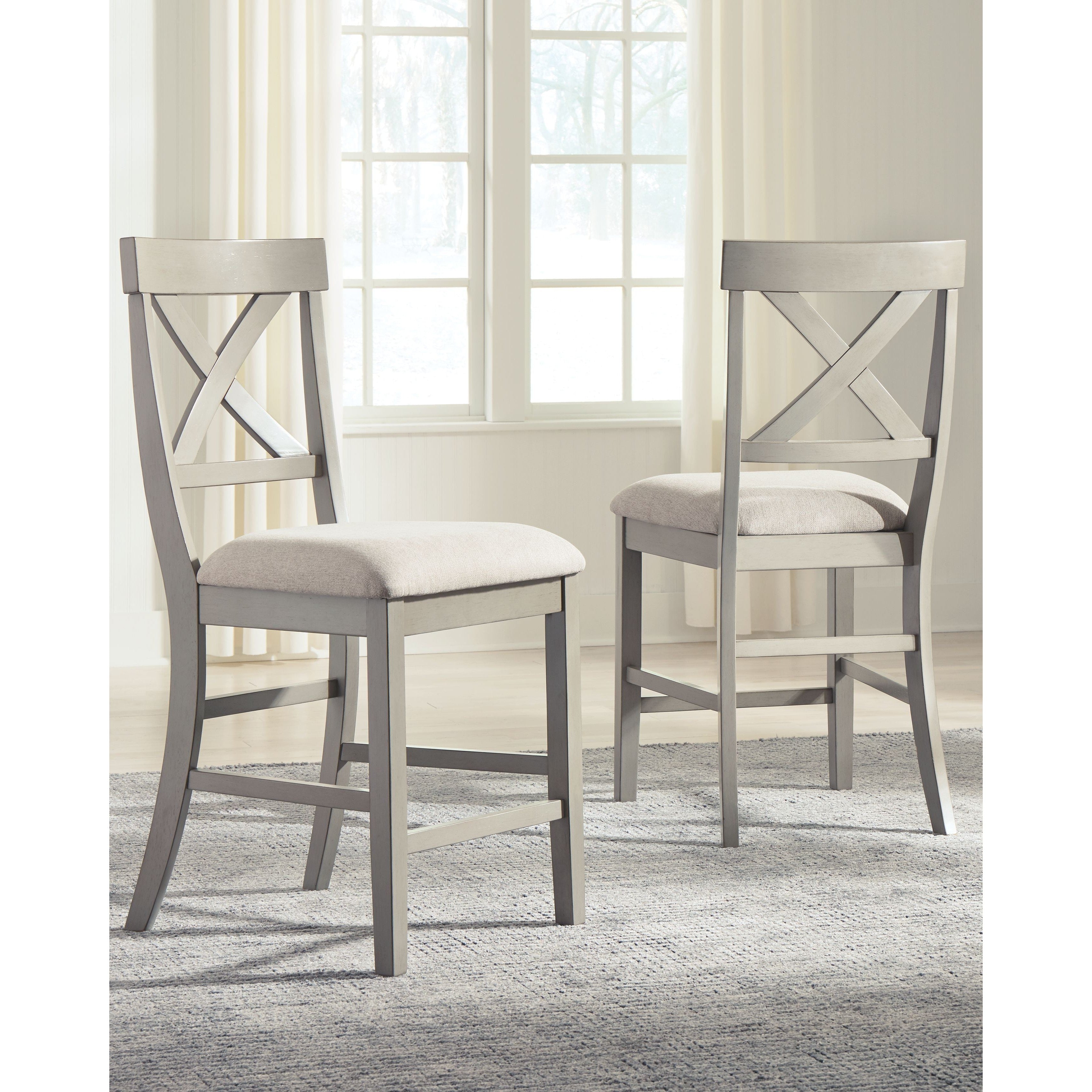 Bring a relaxed yet refined sense of good taste to a space with this wonderfully comfortable bar stool. Clean-lined frame sports a gray finish that's so easy on the eyes. Covered in a complementary textured beige fabric, the stool's cushioned upholstered seat goes easy on the body. And with classic X-back styling, this stool is an inspired choice for modern farmhouse living.