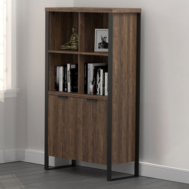 Declare your eclectic style or knowledge base with this bookcase from the pattinson collection. four (4) shelves allow for easy showcasing of books or other display pieces. modern industrial design adds form, functionality and a cool look. two (2) door cabinet provides for additional storage. combine with one or more pieces from this collection to create a handsomely contemporary space.