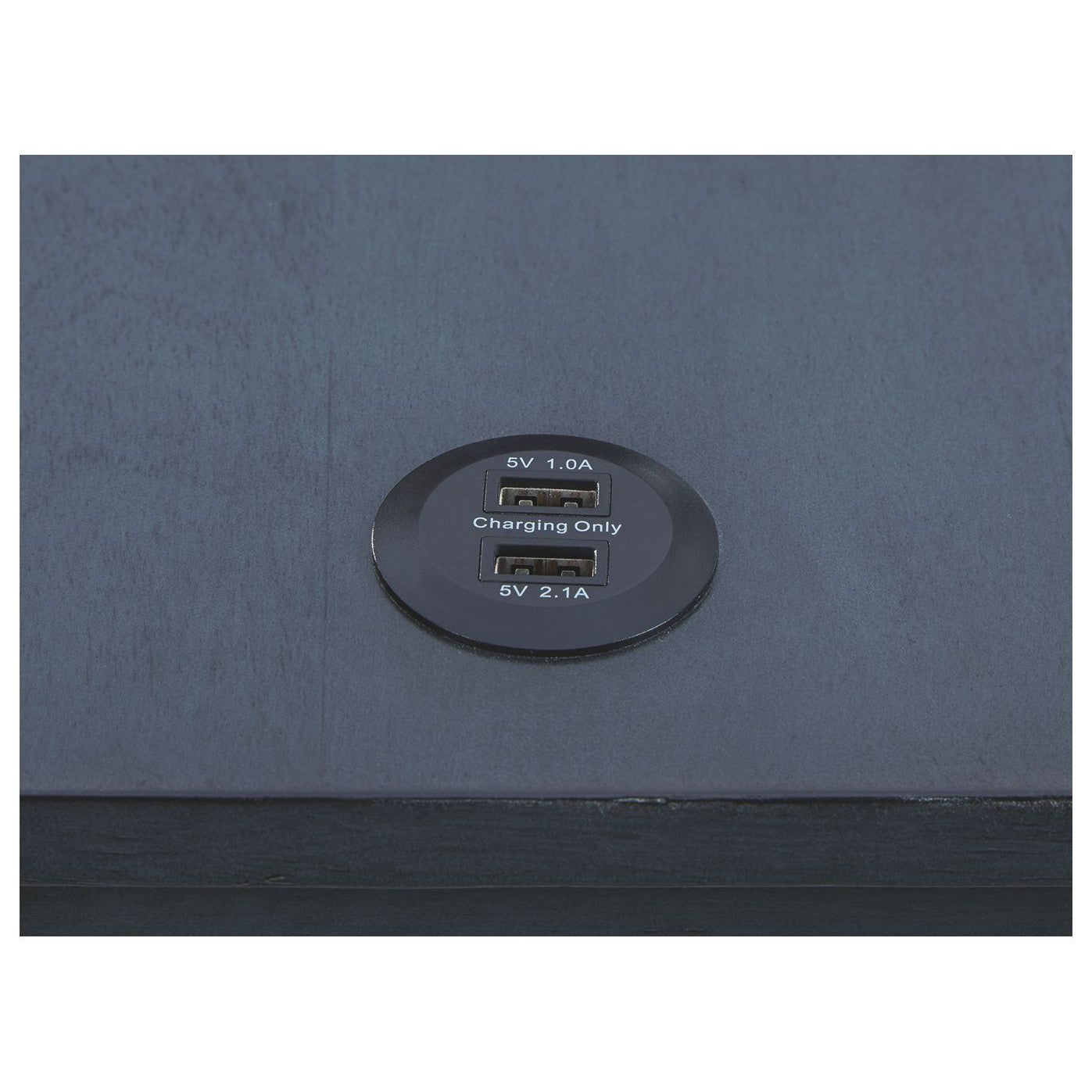 A study in seeming contradictions, this accent table is both practical and stylish. A storage drawer lets you keep necessary items in reach while out of sight, and two USB ports keep your devices powered up as you wind down. The clean lines and antique blue finish give this piece a high-design profile to elevate your space.