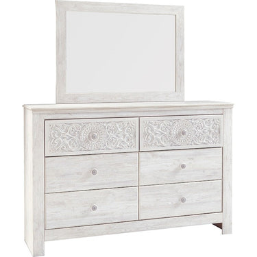 Ashley Paxberry Six Drawer Dresser & Mirror w/Medallion Drawer Pulls in Whitewash