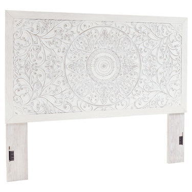 Live out your trendsetting free spirit with this king headboard. Exquisite carved medallion pattern is a testament to boho-chic style. Charming whitewashed finish sets a foundation for a room bursting with personality. Adjustable height design offers added flexibility.