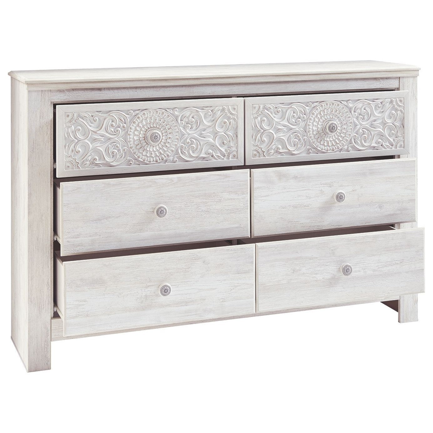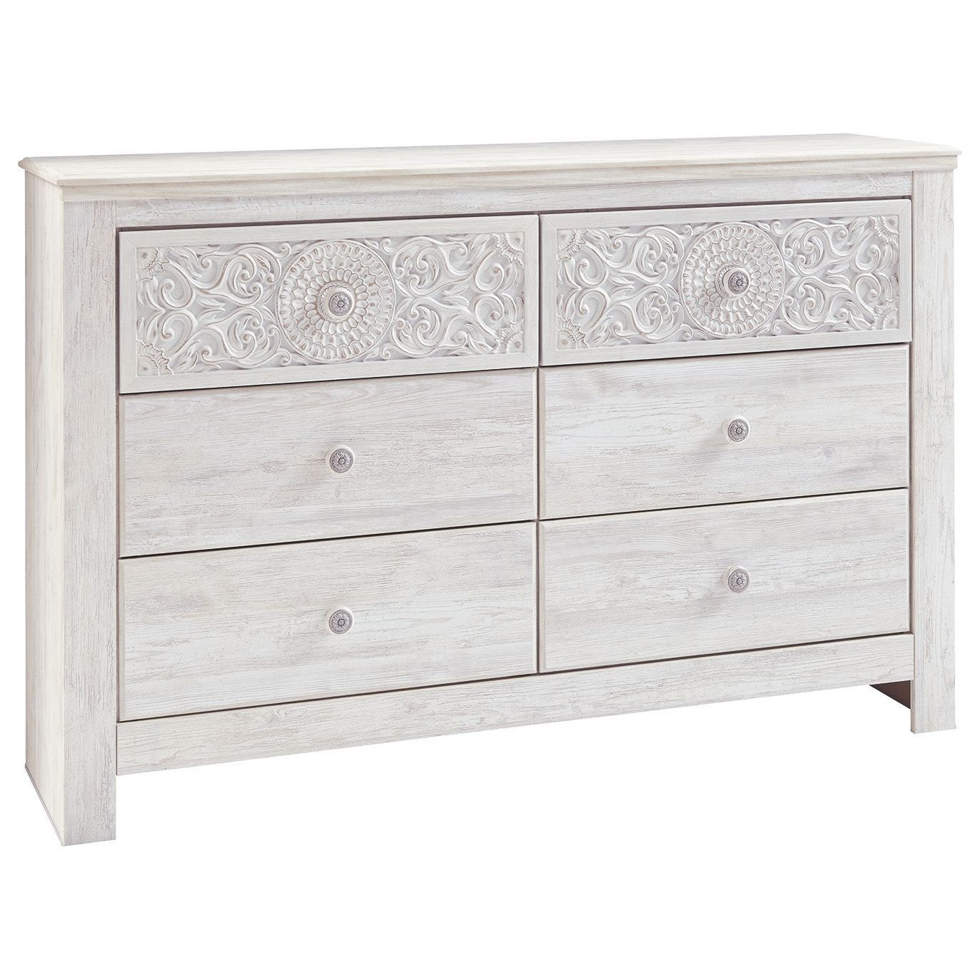 Ashley Paxberry Six Drawer Dresser w/Medallion Drawer Pulls in Whitewash