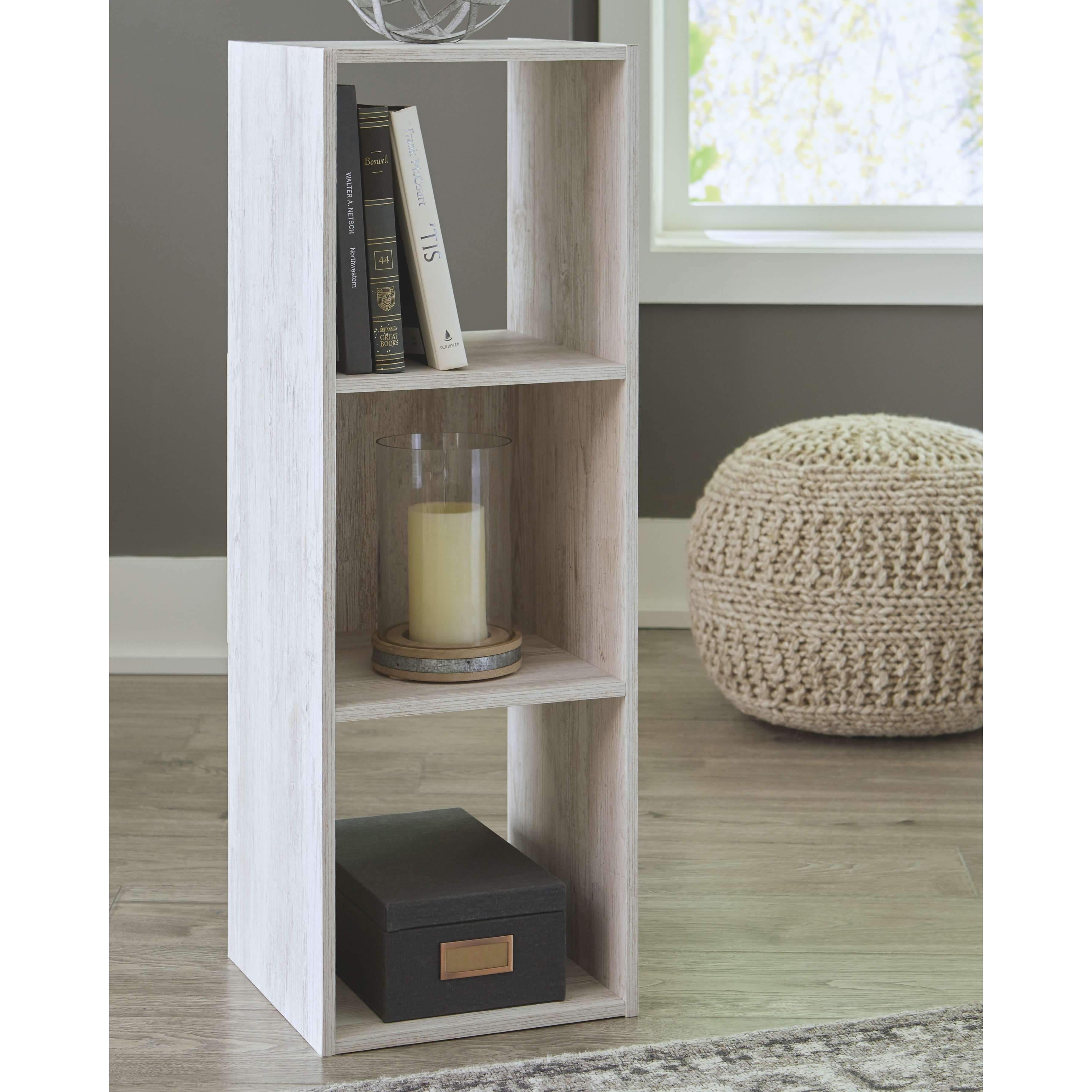 If it's coastal chic or cottage quaint style you long for, the Paxberry whitewashed three-cube organizer invites you to go to town. Its distinctive weatherworn finish conveys an easy-breezy sensibility, perfect for a restful bedroom retreat. Open and closed backs make it abundantly practical.
