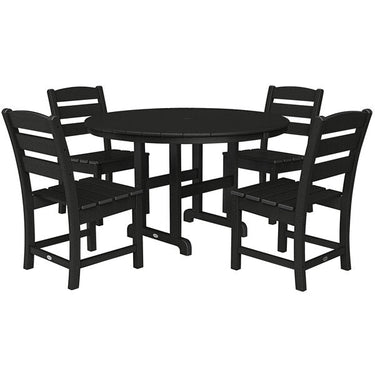 Polywood 48" Round Farmhouse Dining Table & 6 Lakeside Dining Chairs in Black