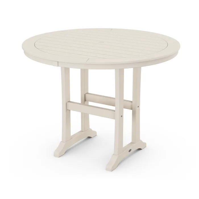 Polywood Nautical Trestle 48" Round Counter Table in Sand Bundle