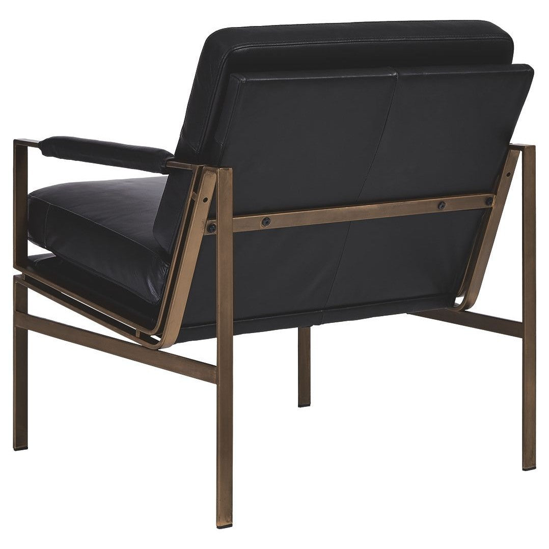 With its ultra-modern vibe and ultra-indulgent feel, this accent chair impresses with high-end looks priced to entice. Polished nickel-tone metal frame is a sleek, chic complement to the richly appointed black leather seating. Talk about the lap of luxury.