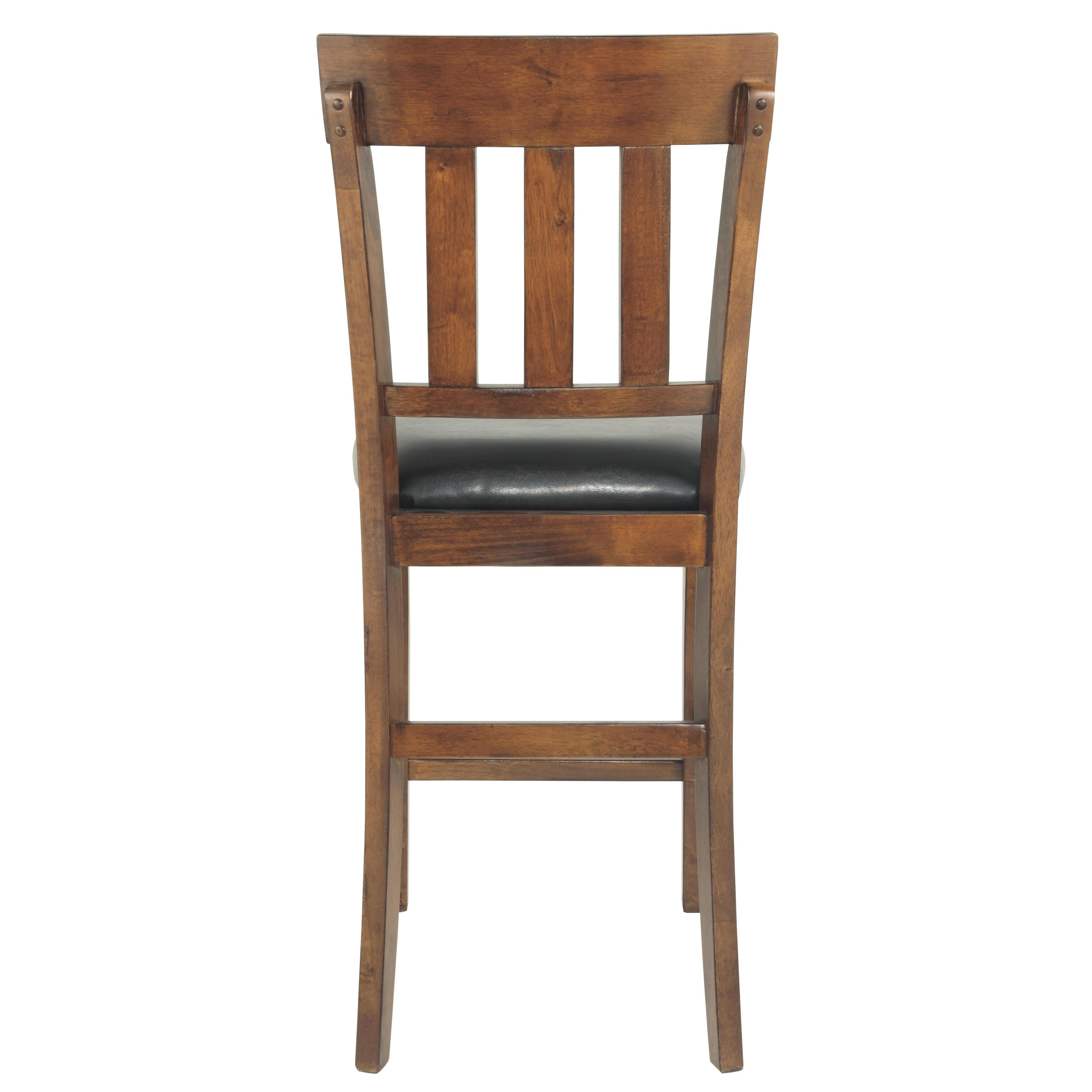 Sleek lines and comfortable cushioning combine to make this upholstered bar stool the favorite seat at the table. Traditional shaker design is given a vintage treatment with the rustic, burnished finish. Faux leather upholstery easily wipes clean.