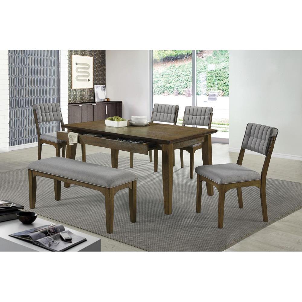 Create a mid-century modern charm into any dining space with this transitional dining table. featuring a medium brown finish throughout, it offers a neutral and earthy color palette to complement rustic styles. the table also features a fixed top and is constructed of asian hardwoods with a white oak veneer. on the side of the table is a long, narrow drawer, where you can store table linens and plate chargers, as well as a felt-lined section for silverware storage and smooth, full-extension drawer glides. available within the same rayleene collection are matching furniture pieces such as chairs, benches, and even a counter height table collection in the same style.