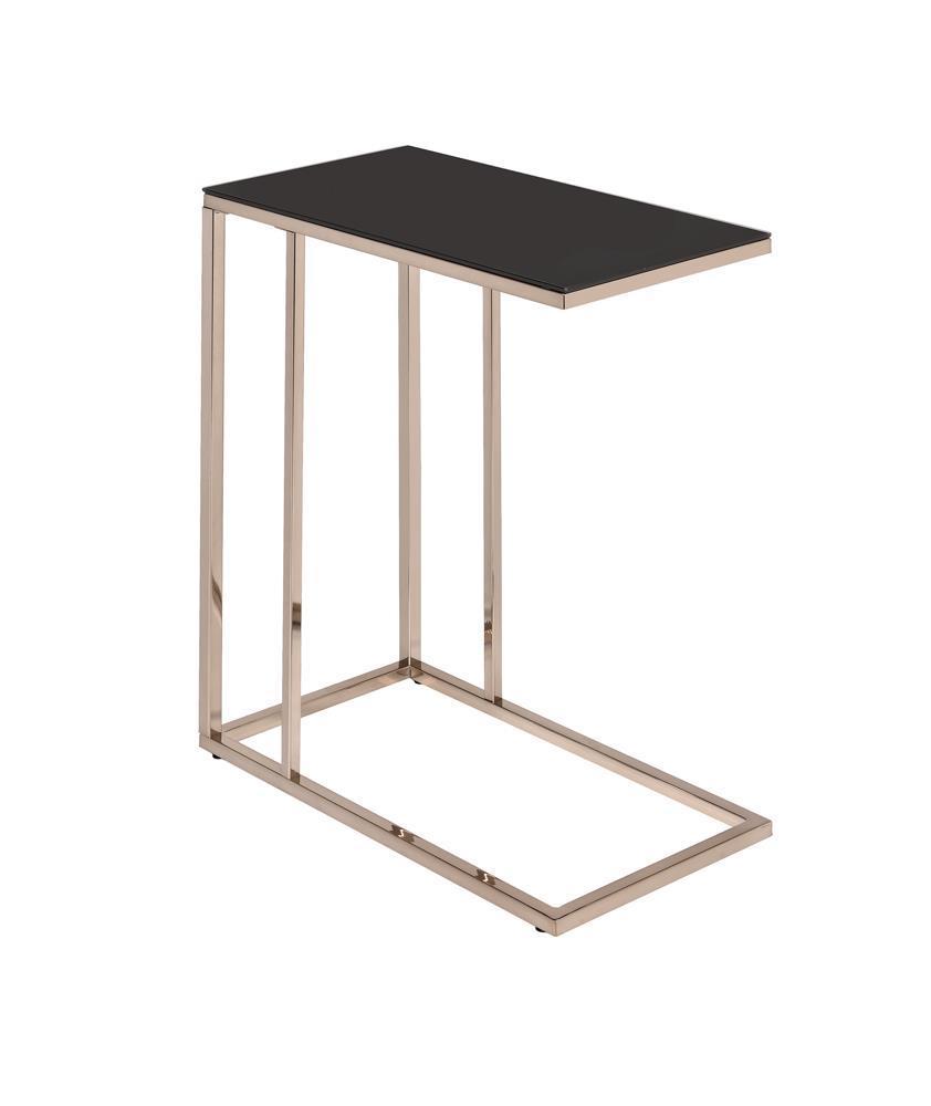 * contemporary accent table with tempered black glass top adds strength and displays modern and industrial elements