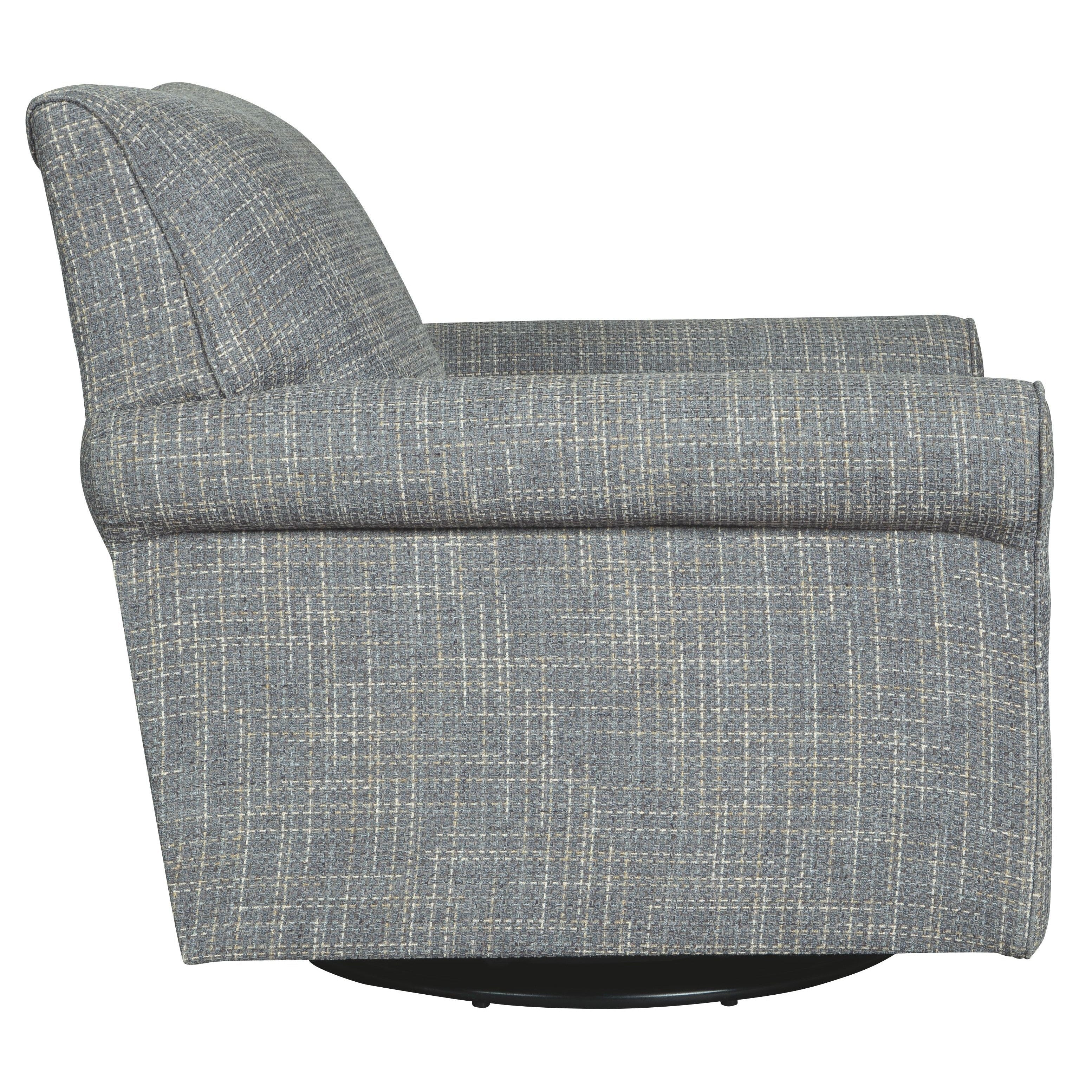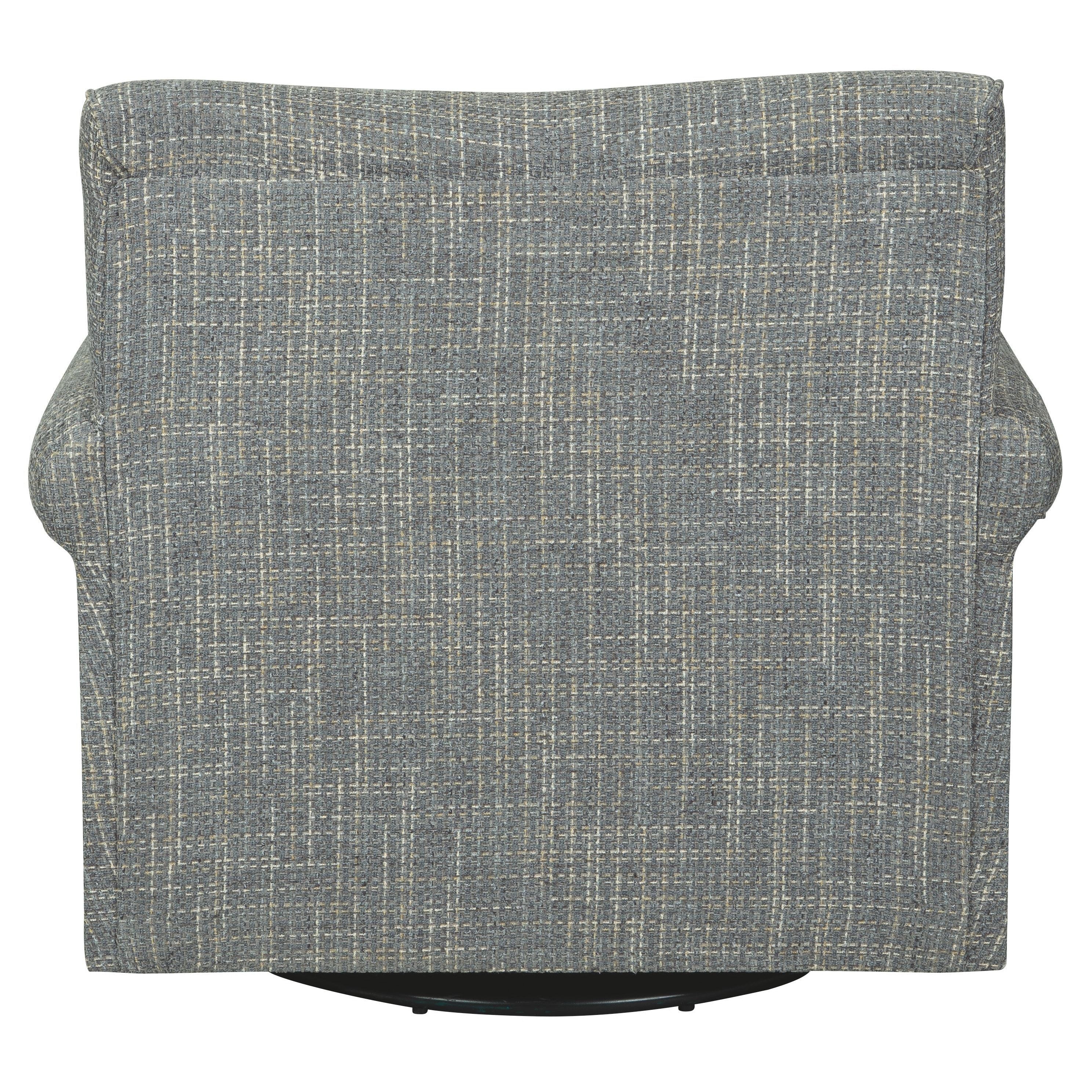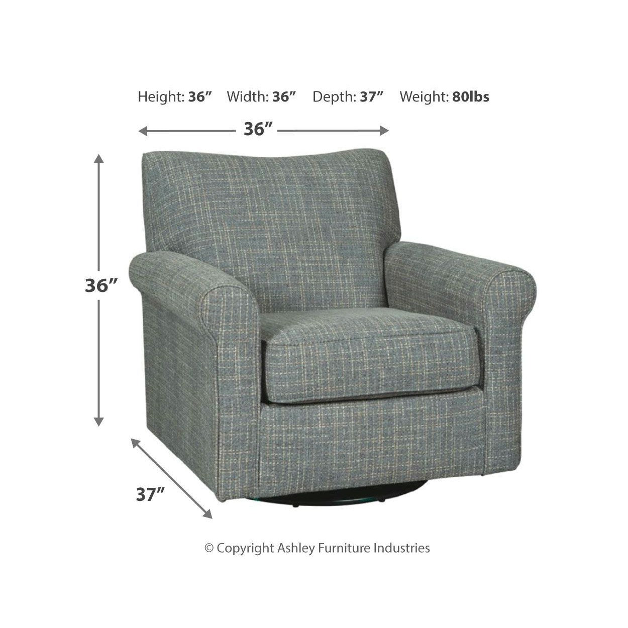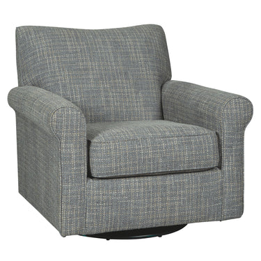 Sporting a tantalizing tweed weave fabric in such a soothing blue hue, this swivel glider accent chair gives the classic roll arm chair a modern twist. Smooth, 360-degree swivel caters to your comfort-and your viewing pleasure. Gentle glider feature is designed to rock your cares away.