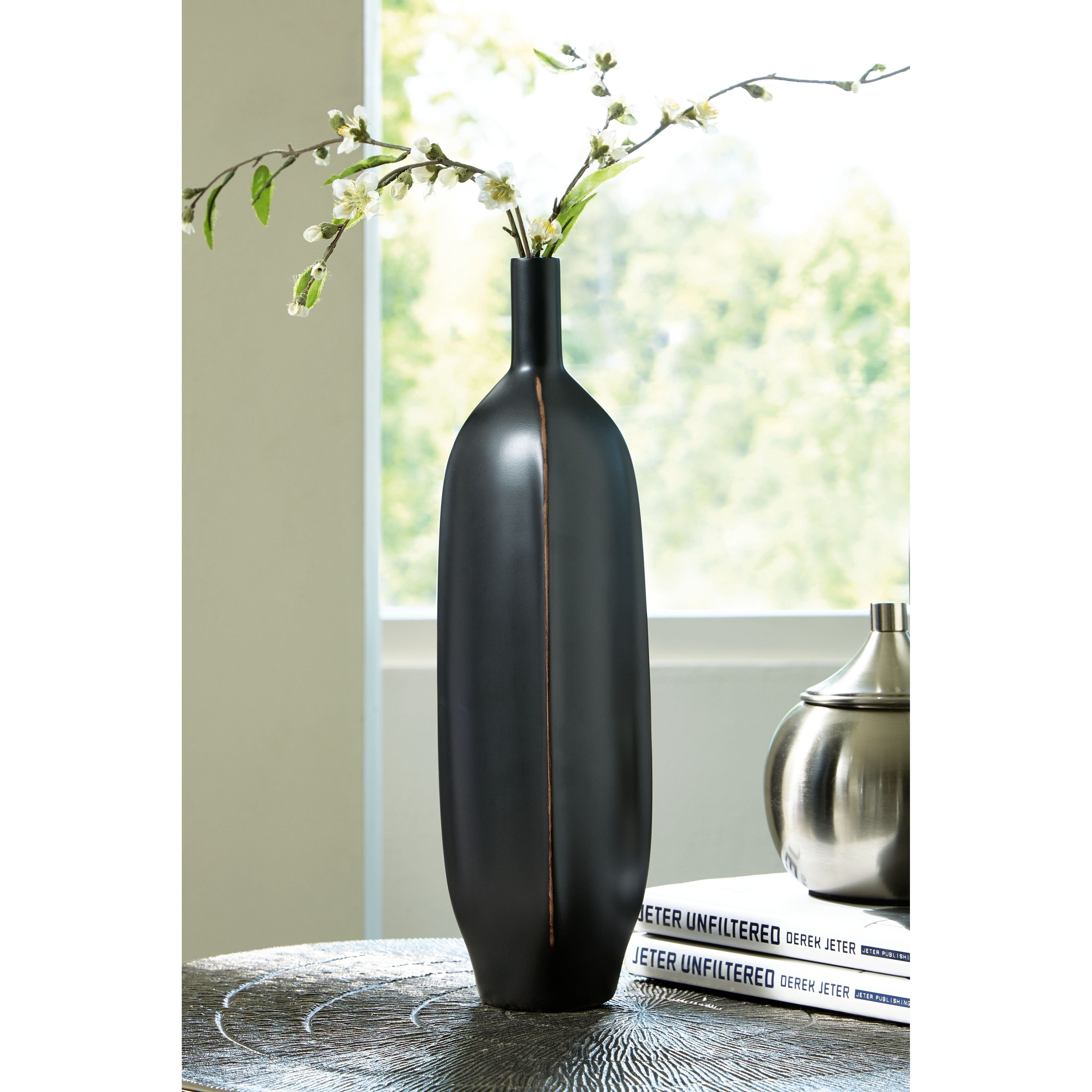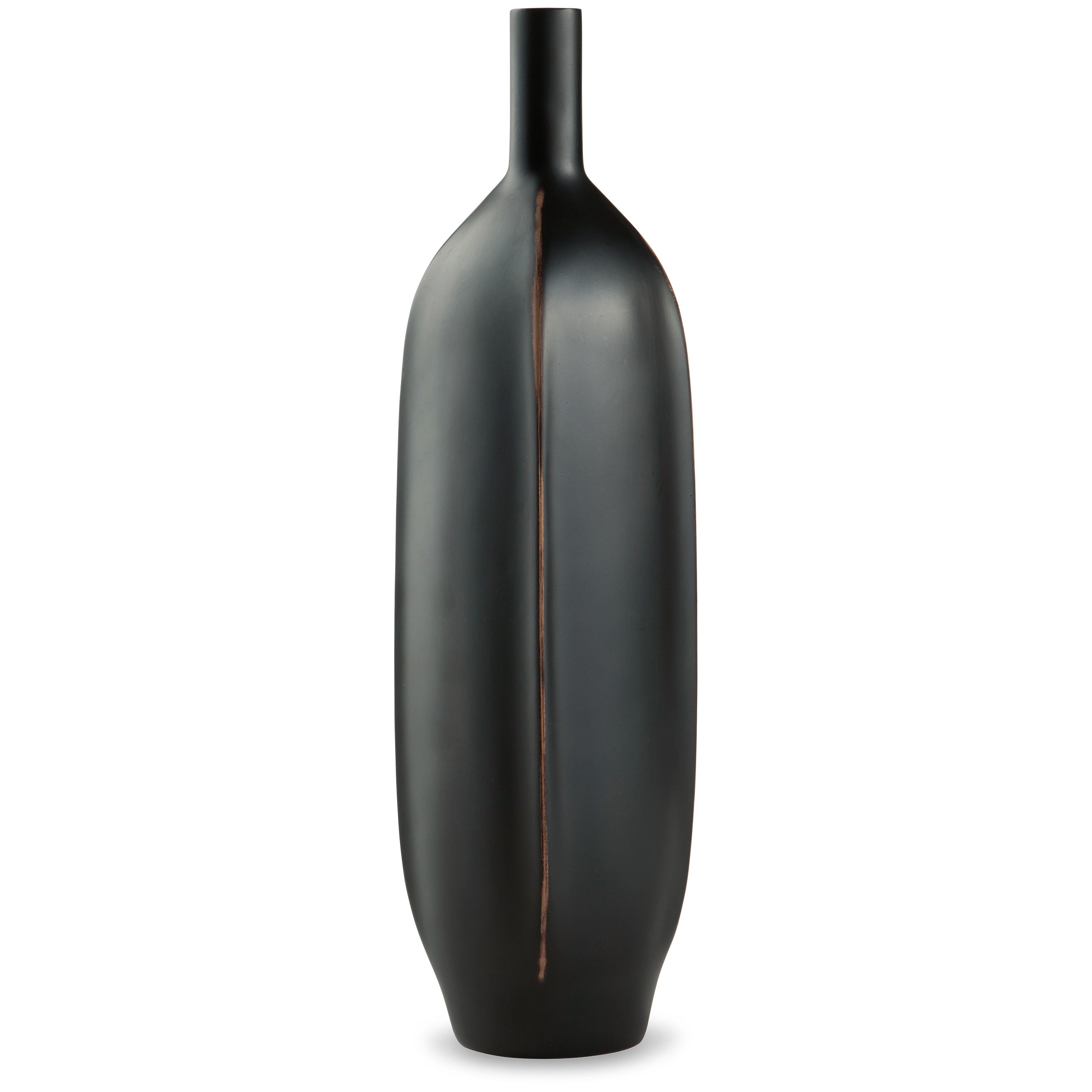 Impress with the simply sleek stylings of this vase. A black finish coats the piece, with a brown rub on the corners acting as a subtly eye-catching design element. What a chic addition to your bookcase, mantel or tabletop.