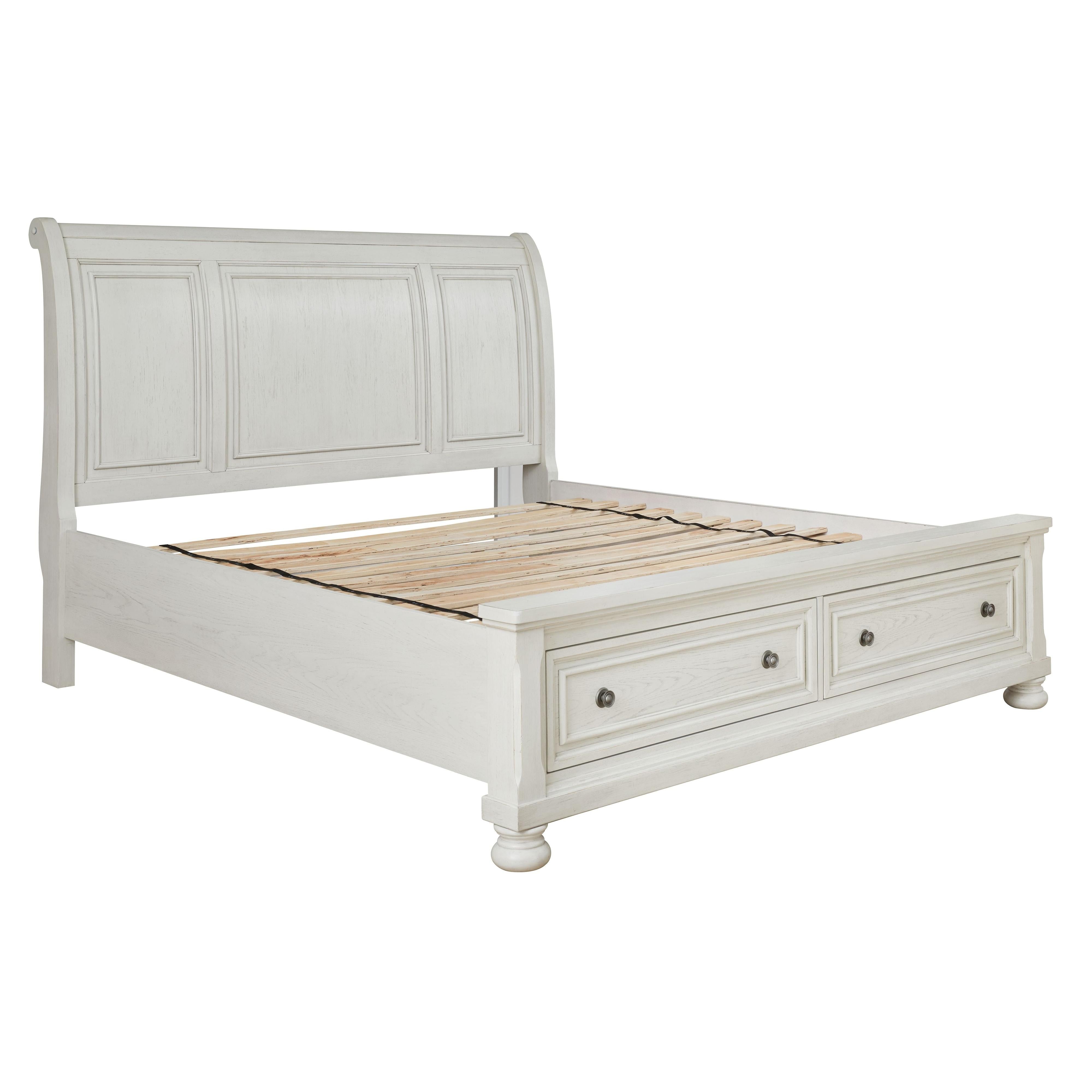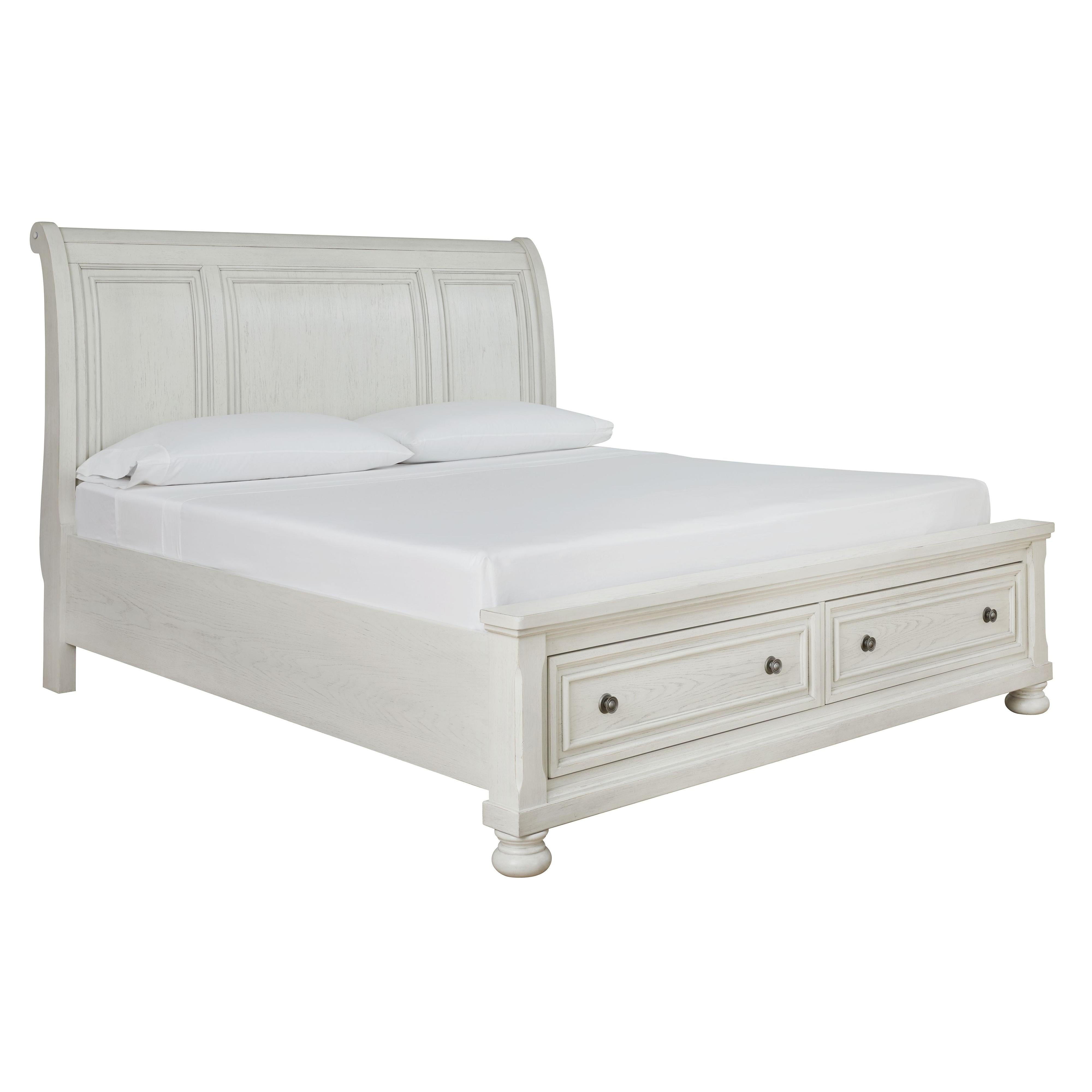 Robbinsdale - Antique White - King Sleigh Bed With 2 Storage Drawers