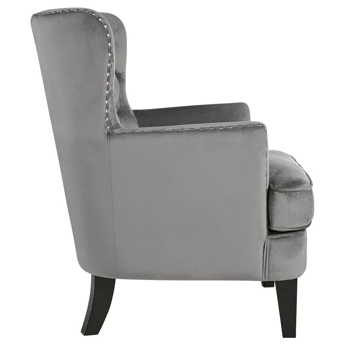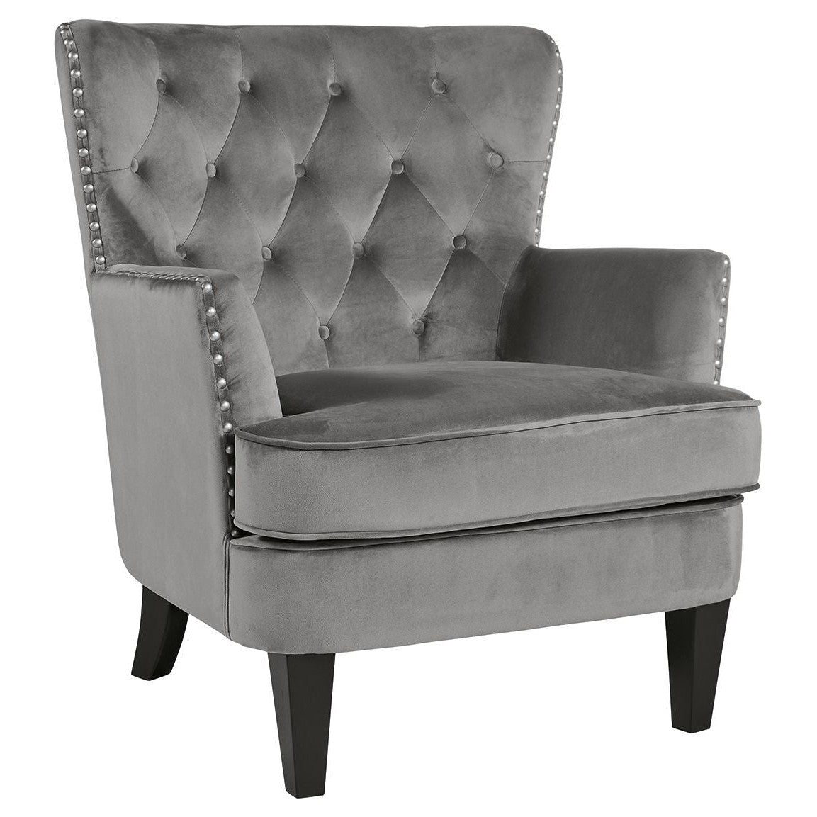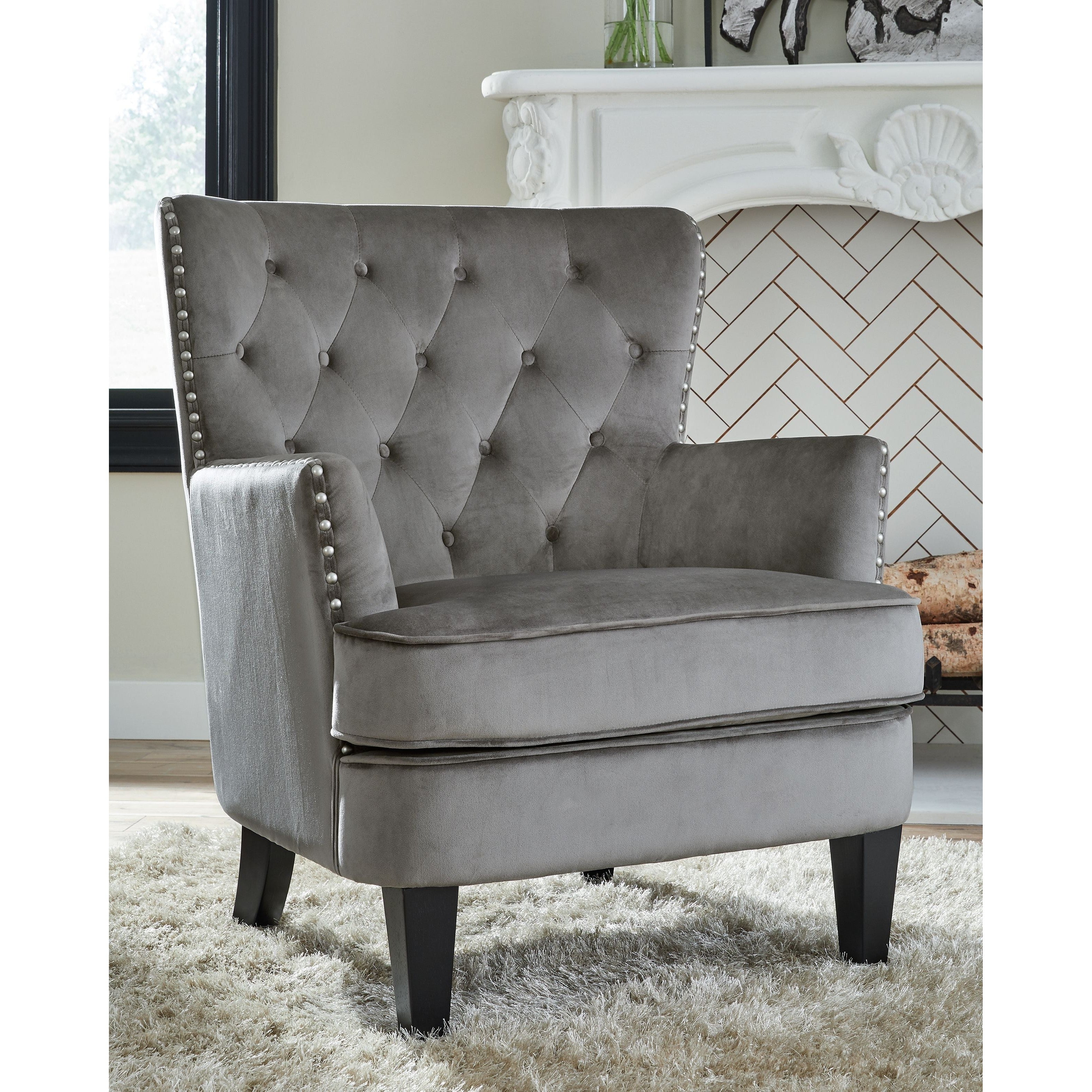 Don't leave your living room incomplete. Fill the open space with this accent chair. Slim track arms and nailhead trim give this traditional silhouette an updated and inviting appeal. The diamond tufted back cushion and attached seat cushion are an absolute pleasure to sit in. Alone or paired with other upholstery, this chair is a class act.