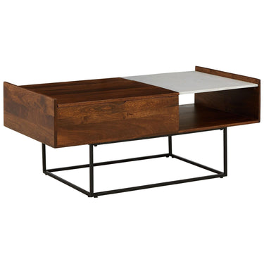 A posh and polished look for a contemporary aesthetic, this striking coffee table features solid mango wood, a natural marble tabletop and a slim metal base. Equipped with a convenient lift-top surface for working or dining from your sofa, as well as open space underneath, this beautiful coffee table easily complements modern seating arrangements.