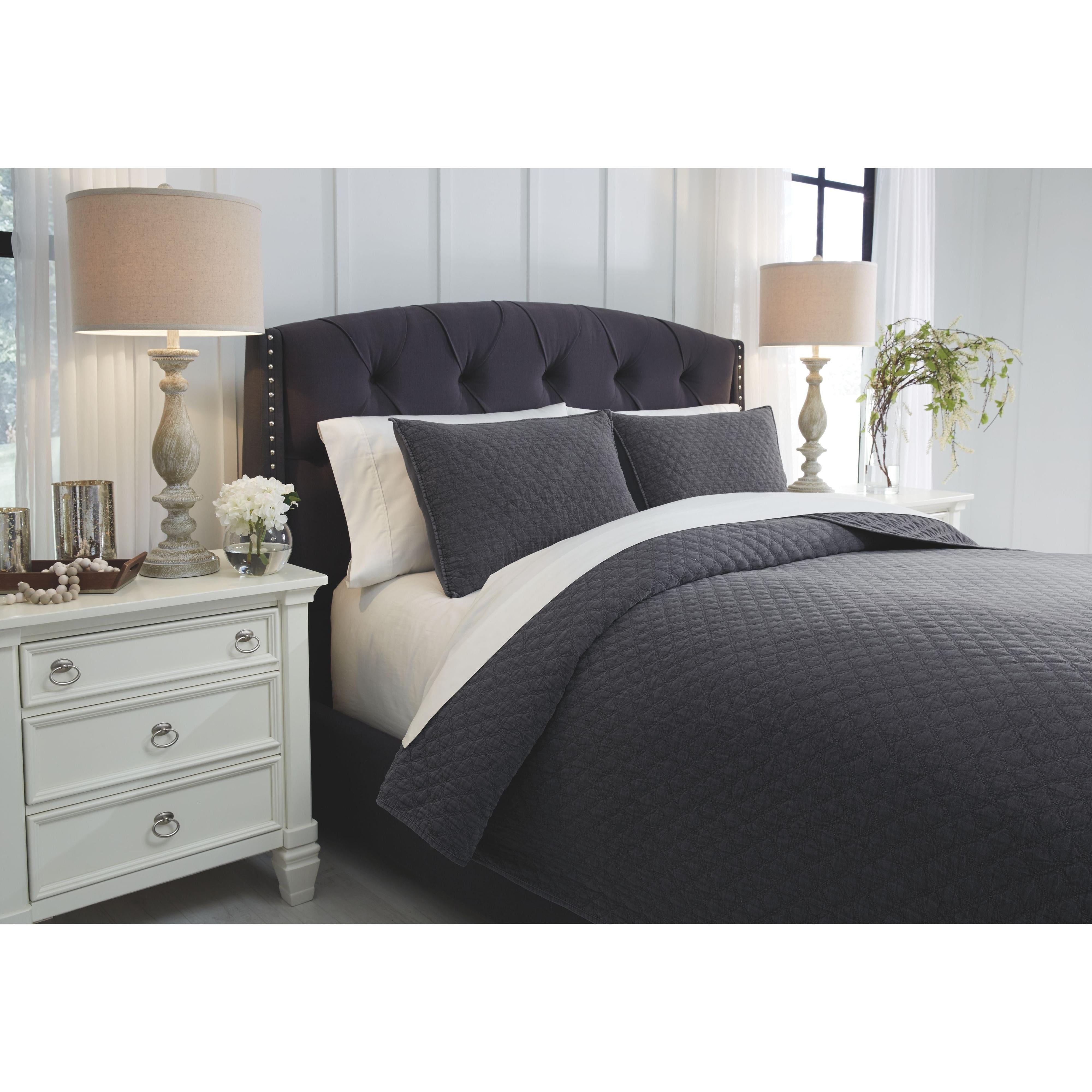 With this coverlet set, you'll never want to leave your bed thanks to the ultra soft quilted microfiber texture. And the deep charcoal shade? A perfect match for almost any decor style. Machine washable capability makes routine cleanups easier than ever.