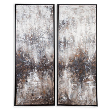 Add contemporary character to your decor with the stoic beauty of this wall art set. This dynamic duo showcases shades of taupe, gray, black and mocha to create a captivating abstract look.