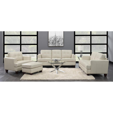 Classic and casual elegance fills a room with delightful ambiance. this tasteful sofa offers the easy care of premium breathable leatherette in a fresh cream hue that blends with virtually any palette. attractive stitching accents creates a geometric effect on its frame and seat cushions. charming tufted back cushions are generously padded for optimal comfort. contrasting cappuccino finish legs make this elegant sofa even more versatile.