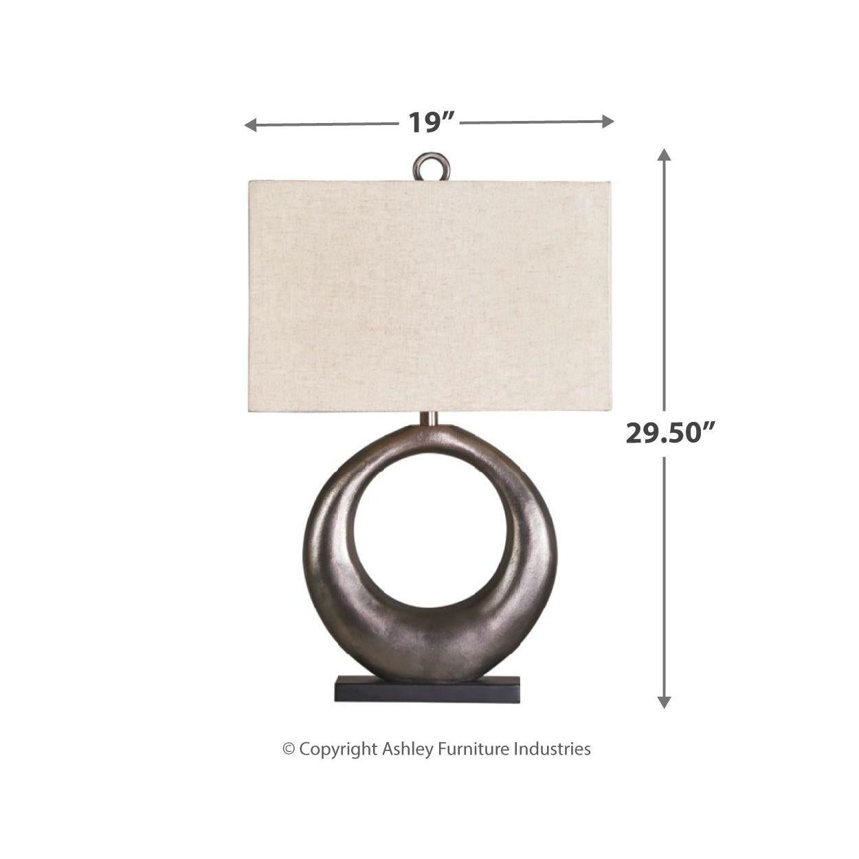 Ashley Saria Metal Table Lamp (1/cn) in Antique Silver Finish