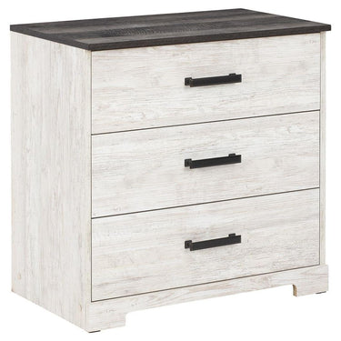 Shawburn - White / Black / Gray - Three Drawer Chest