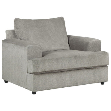 Flaunting a trendsetting silhouette, this oversized chair puts the contemporary in your contemporary home. Seating space is ample, giving you elongated plushness for deep relaxation. Microfiber fabric satisfies your need for a piece that feels as good as it looks.