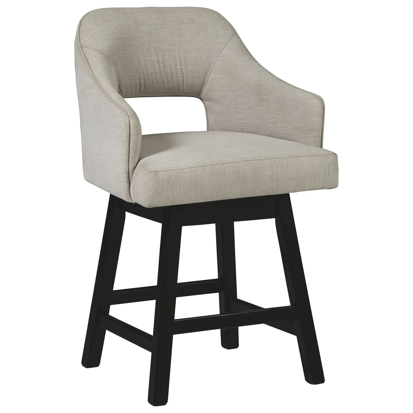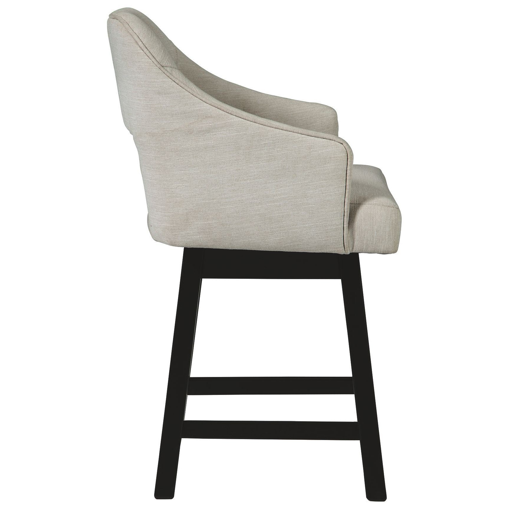 This barstool invites you to take contemporary modern style for a spin. Comfortably cushioned seat, self-returning swivel and contoured back make it beautifully in tune with your needs. Luxurious linen-look upholstery is a sensational touch.