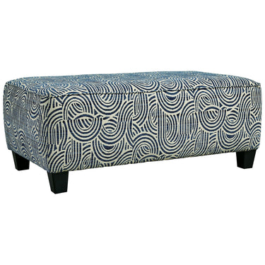 This oversized accent ottoman turns heads with a complementary color palette of navy blue and tan hues. Amazing comfort awaits you with this visually appealing companion piece.