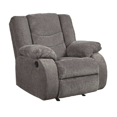 This rocker recliner puts the win in winning. Its waterfall back design and doubly plump pillow top arms team up with soft chenille fabric to go for the goal. Ample seating room makes the comfort possibilities endless. Sit back and relax. You won't go wrong with this recliner.