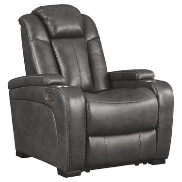 Looking for a seat with all the bells and whistles? This loaded power recliner has you covered. Get double the relaxation-recline your body then adjust your headrest. With USB charging ports, your devices will enjoy this recliner, too. Stainless steel cup holders accompany you on either side. All wrapped up in quality faux leather with fashion-forward jumbo stitching for a look and feel you'll love.