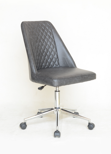 Pull this contemporary accent chair up to a workstation in your home office.wrapped in a supple leatherette, this office chair features a bucket style seat with a diamond tufted backrest and a smooth cushion.capable of getting around the office, this chair also features five caster wheels attached to a shiny chrome base.highly functional, this office chair can also be raised and lowered to suit your existing desk height.place this stylish chair in a modern home office for comfort and versatility.