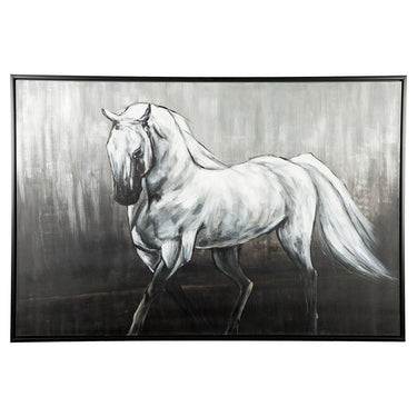 Rich with mood and mystique, this equestrian-theme framed wall art is unbridled beauty to behold. The fact that the gallery wrapped canvas is hand-painted makes each rendering a one-of-a-kind work of art. Large scale adds to its majestic nature.