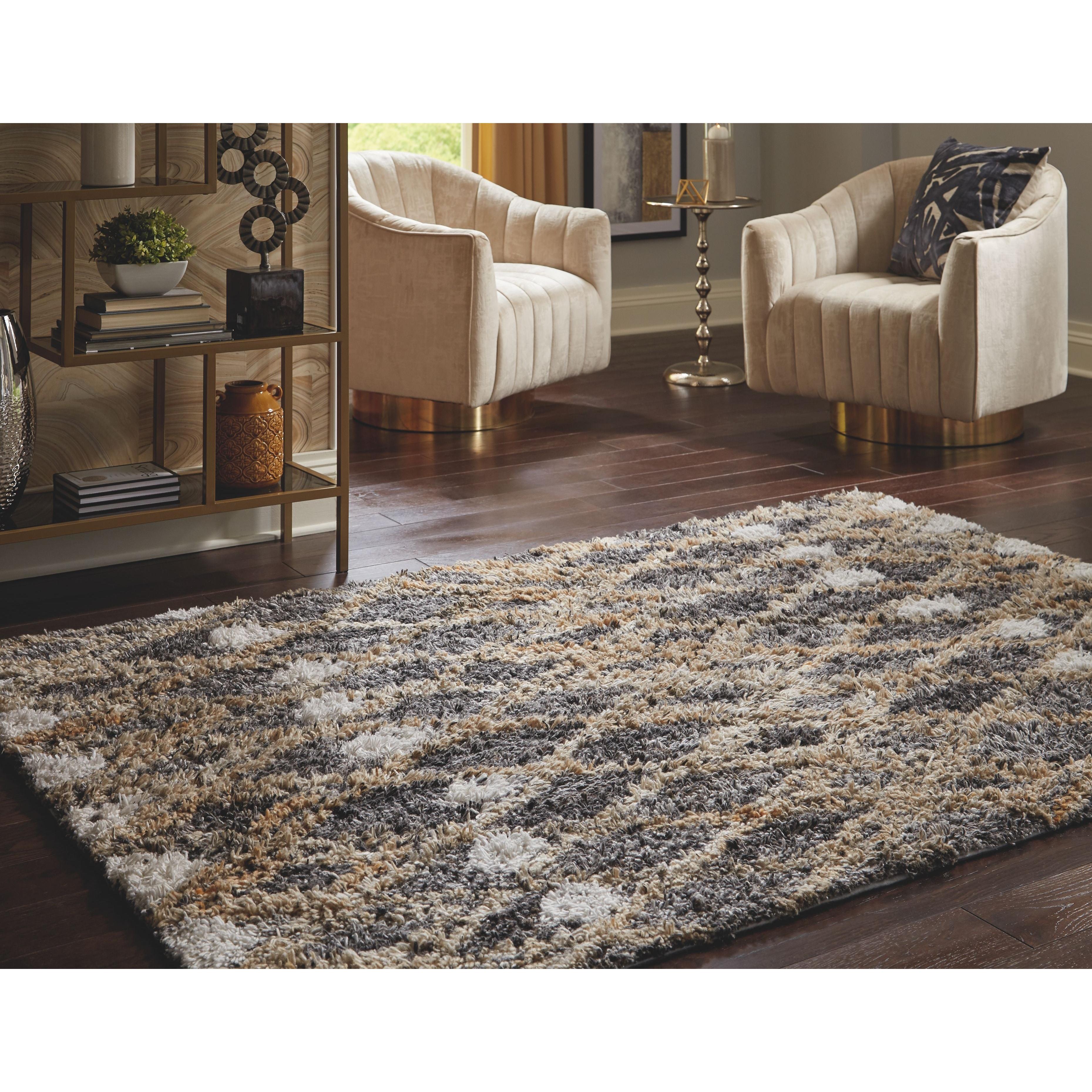 This accent rug features a mix of design and color that is sure to breathe life into any room in your home. The tan and gray palette serves up a striking, eye catching aesthetic that is sure to be the focal point in your space.