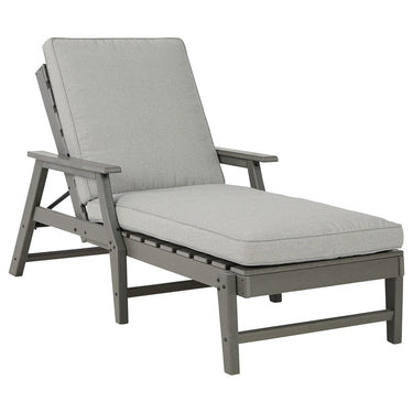 It's the dawn of a new day for gray. Embrace the style trend with this outdoor chaise lounge chair. Crafted of MEGA TUFF� HDPE material, it combines the exceptional durability and weather resistance you need with the "wood look"you love. This comfortably cushioned chaise with an adjustable lay-flat backrest takes outdoor living to a whole new level. Rest assured, the thick seat and back cushions are wrapped in our exclusive Nuvella� high-performance fabric that's fade-resistant, stain-resistant and a breeze to clean.