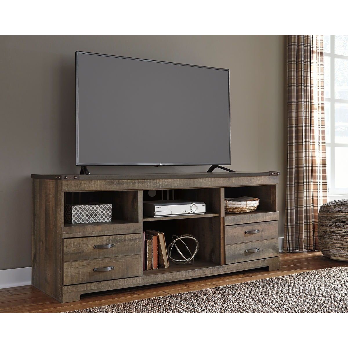 Ashley Trinell Large Tv Stand w/Fireplace Option in Brown (63.39"W x 19.61"D x 26.22"H)