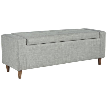 Whether making a statement in the entryway or gracing the foot of the bed, this richly upholstered bench with tapered wood legs is that chic, sophisticated piece you've been searching for. Lift up the tufted seat to reveal ample interior storage space. Talk about comfort and convenience.