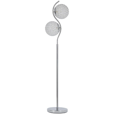 This uniquely striking floor lamp showcases the beauty of transparency. A high-gloss chrome-tone candlestick base is enriched with 2 acrylic bead and metal dome shades giving clean, classic elements a chic upgrade.