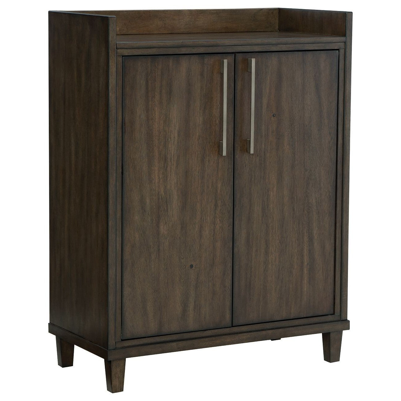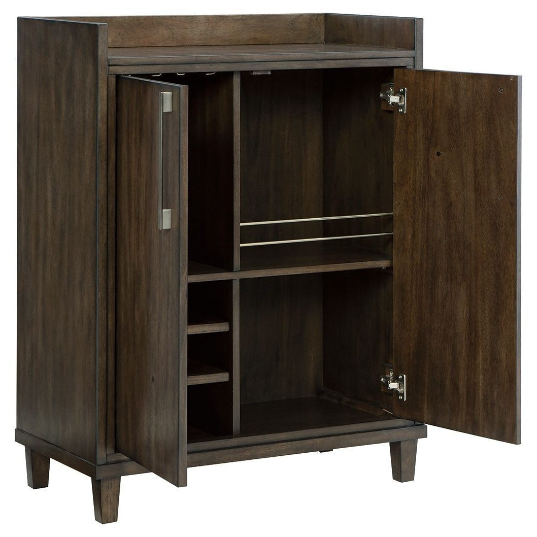 A beautiful balancing act. Clean lined and simply striking, this bar cabinet merges a high-style look with a side of easygoing attitude. Wowing with visual texture, it makes entertaining easy with built-in stemware racks, wine rack shelving and plenty of storage space for bottles and bar accessories.