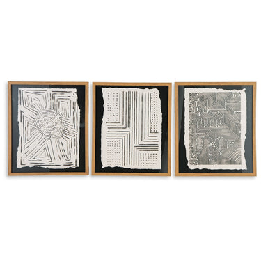 Master minimalism and movement with this wall art set. The geometric designs provide a pop of pattern for visual interest, while black and beige keep your color palette grounded. Place the three pieces together or hang them separately to keep a consistent aesthetic across multiple rooms.