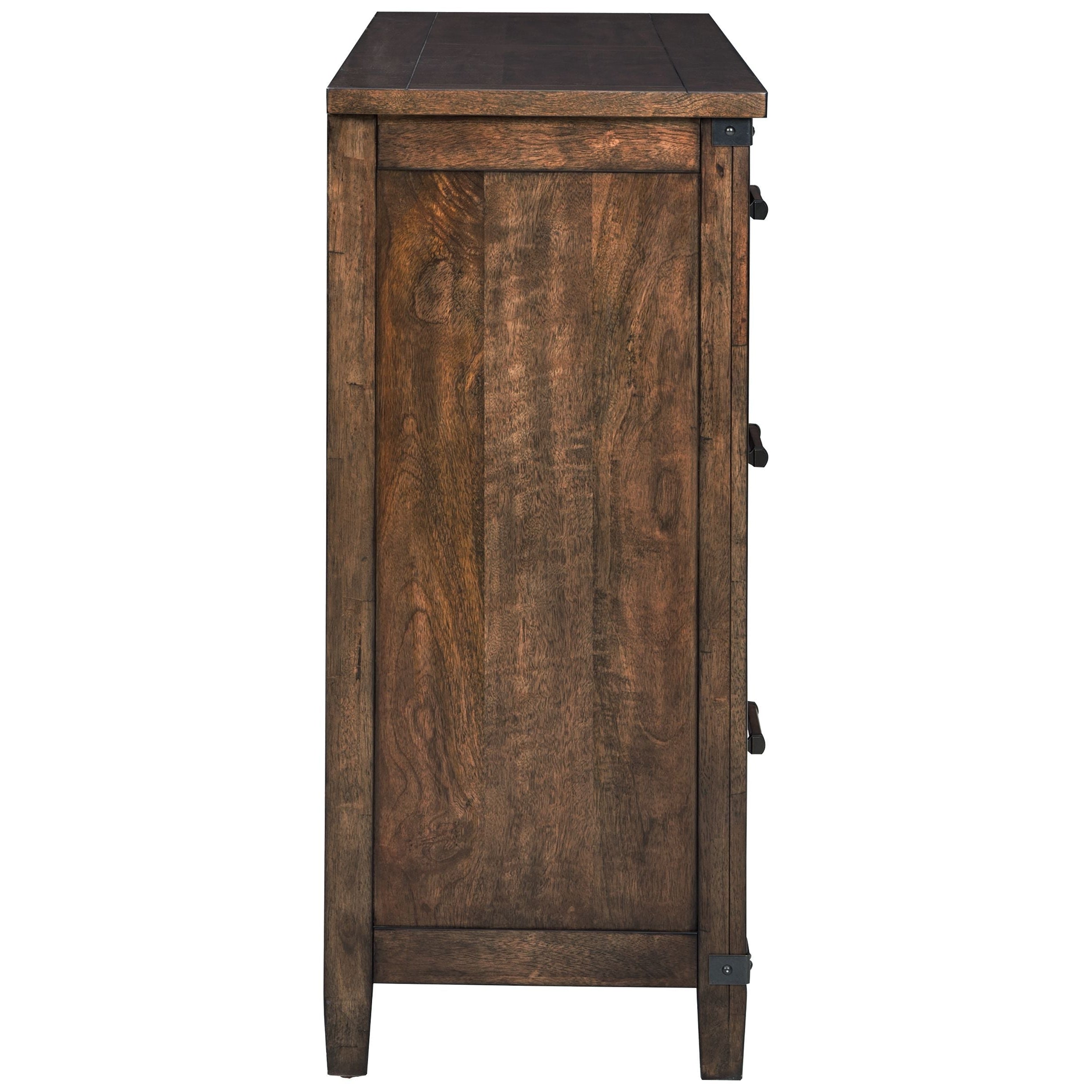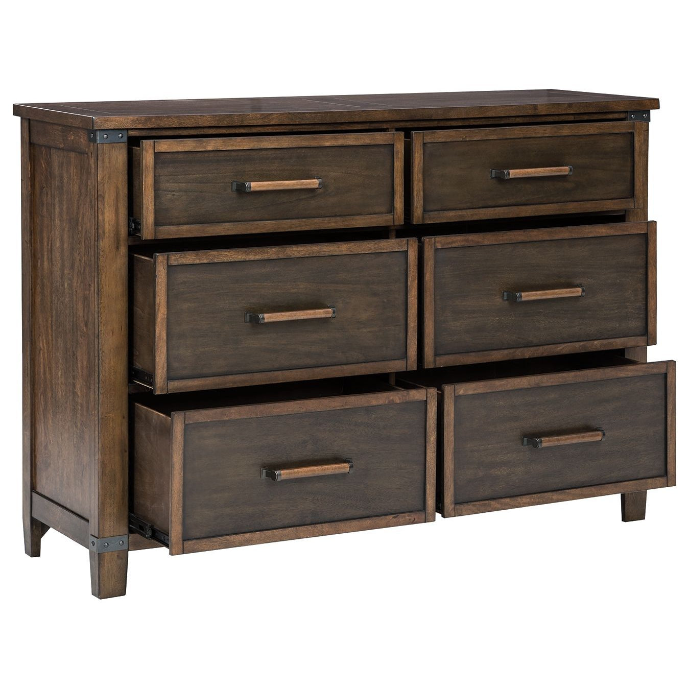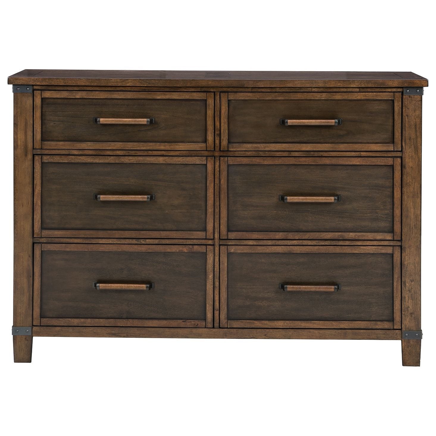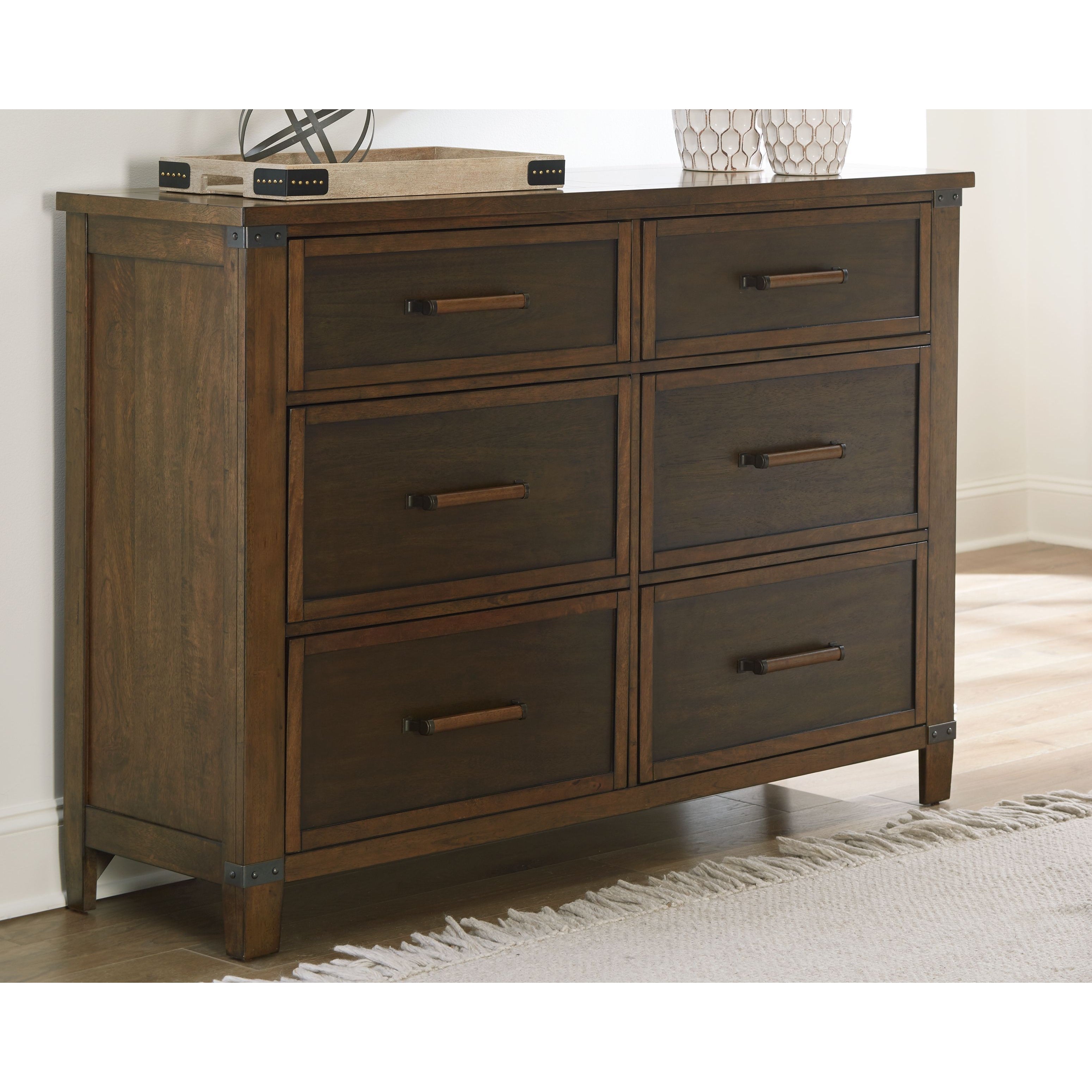 What a fresh interpretation of casual lifestyle design. Inspired by American craftsmanship, but with an elevated sensibility, this dresser blends distinctive details such as metal corner accents and smooth-gliding drawers for an easy-living aesthetic. Those who appreciate the beauty of wood will be doubly impressed with the two-tone walnut and burnt umber finish that imparts an added level of refinement.