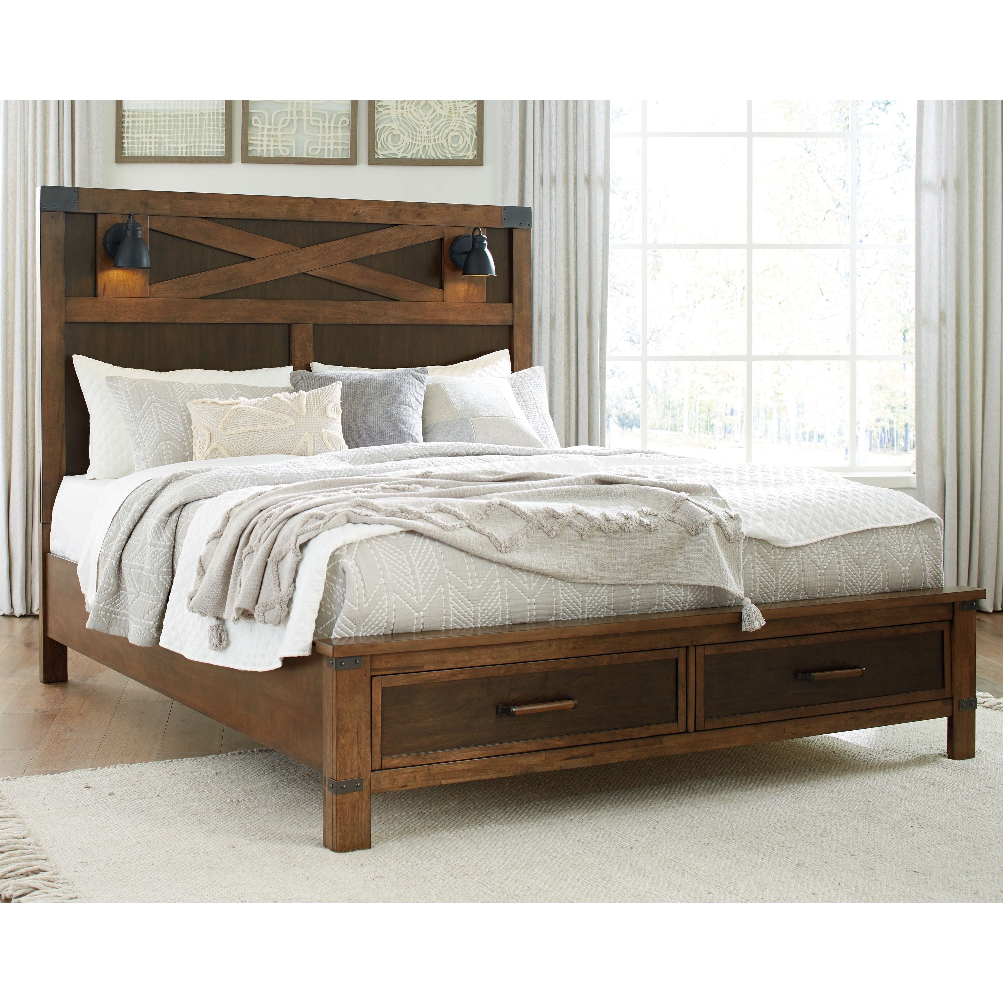 Ashley Wyattfield King Panel Bed w/2 Storage Drawers-Two Tone