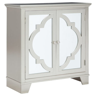 Make a statement with your storage. This accent cabinet features a quatrefoil pattern on a mirror panel door front, elevating your space. Two doors and an adjustable shelf make for multiple storage solutions. With a champagne finish, this accent cabinet creates contemporary elegance with ease.