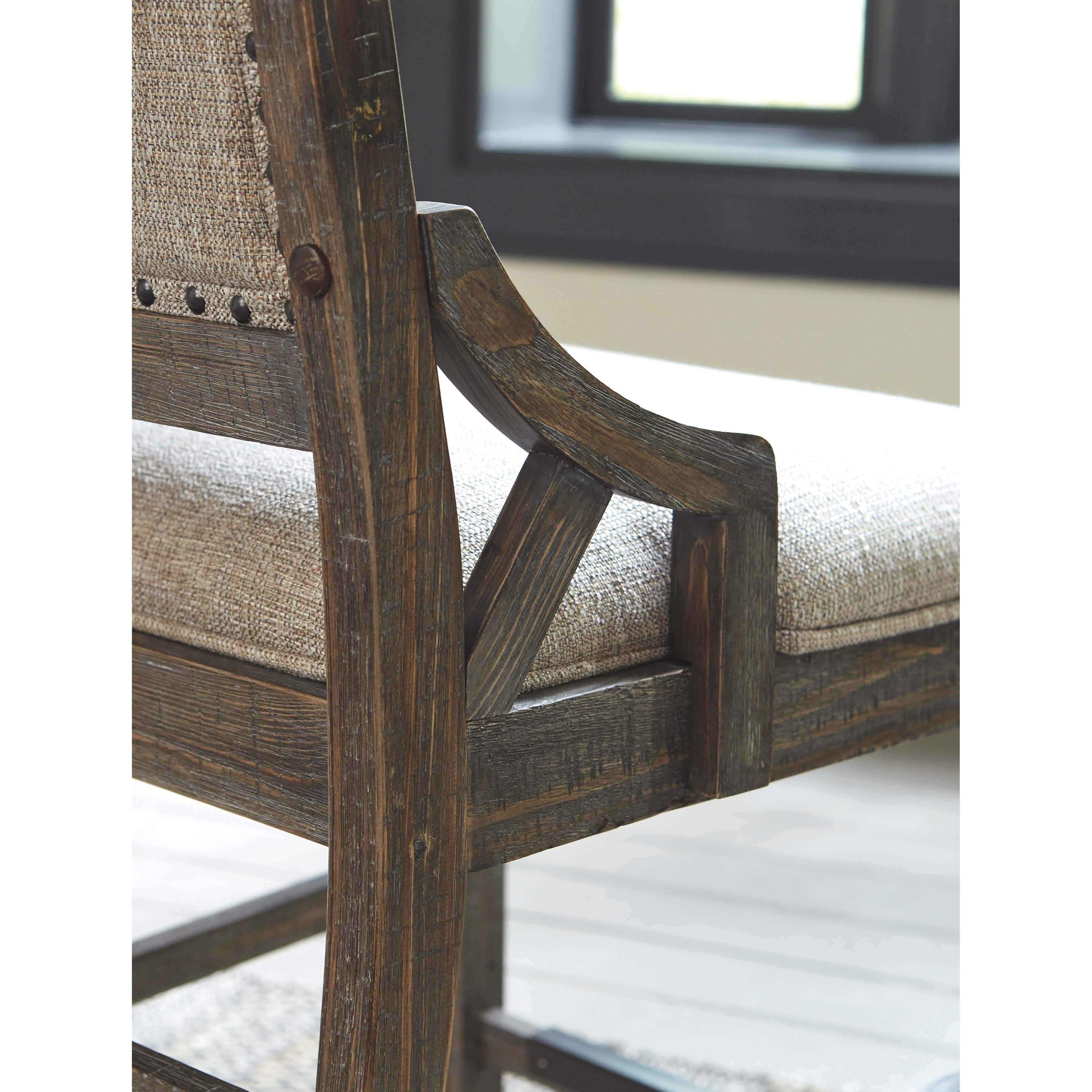 Inspired by heavy and hearty lodge-style furnishings from days gone by, this upholstered bar stool brings the past brilliantly into the present. Enticing with a distressed aged pine color finish with light wire-brushed texture, this richly styled bar stool with textural beige upholstery is reserved for those who appreciate furniture with great presence.