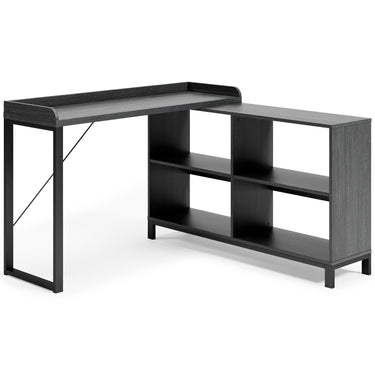Elevate your home office with this simply sensational L-desk with an open bookcase. Pairing a dark wood grain look with a black metal frame for modern appeal, this minimalistic desk provides a convenient work surface with incorporated bookshelves for extra storage and display space. Its an open-concept design for making the most of small spaces.