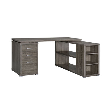 Infuse your daily work routine with chic practicality. this l-shaped office desk has a sleek design that looks great in an office or library. large, open shelves combine with three convenient drawers for lots of storage space. the three drawers include a file cabinet that can hold legal size files for your convenience. crafted from materials of the highest quality, this desk provides a sturdy space to work productively.